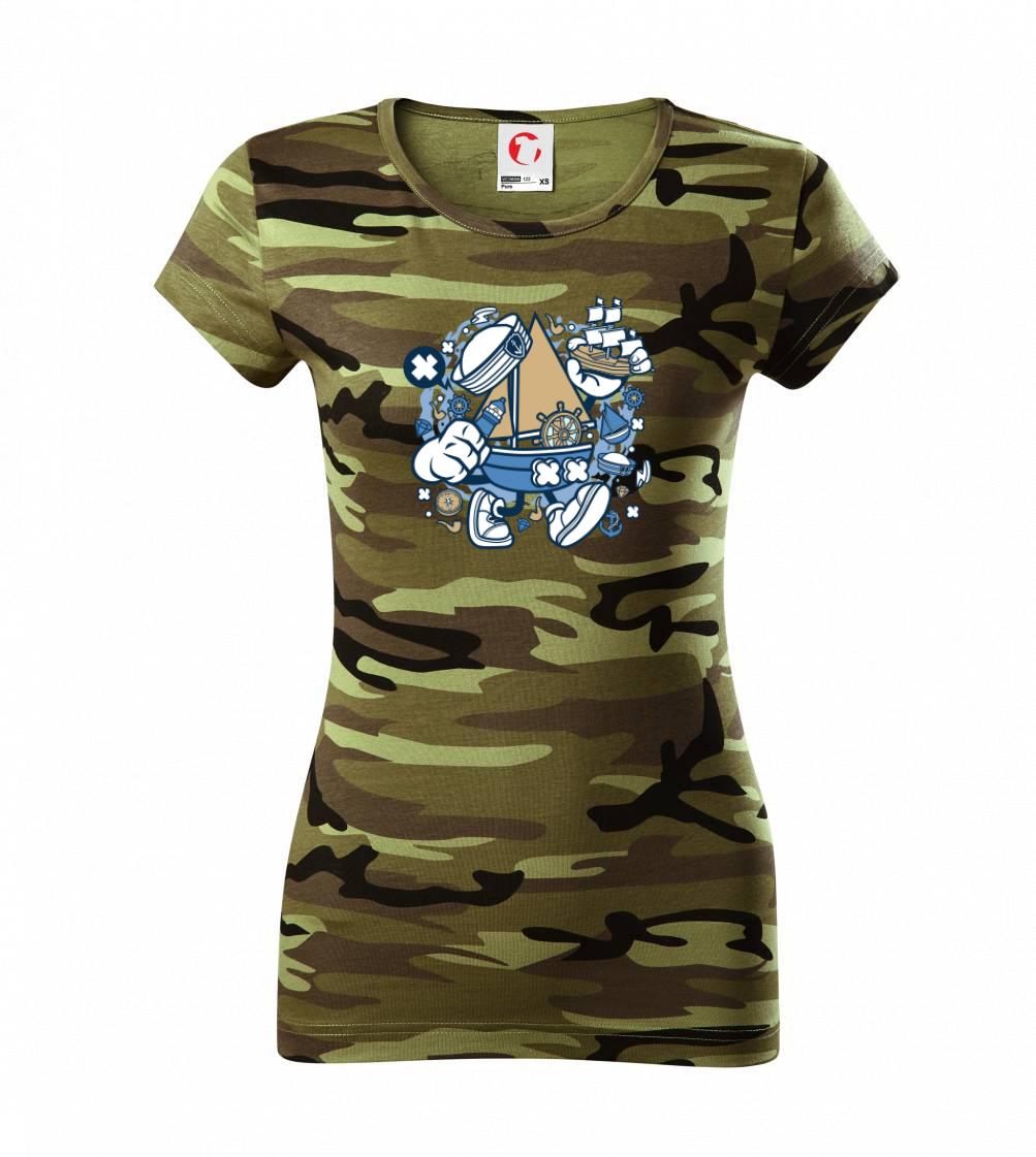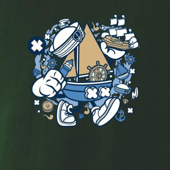 Triko pro námořníka, na kterém je kreslená plachetnice. Loďka v kombinaci s tímhle trikem je ideální parťák. Triko pro vodáka je skvělý dárek na vodu.