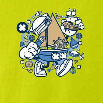 Triko pro námořníka, na kterém je kreslená plachetnice. Loďka v kombinaci s tímhle trikem je ideální parťák. Triko pro vodáka je skvělý dárek na vodu.