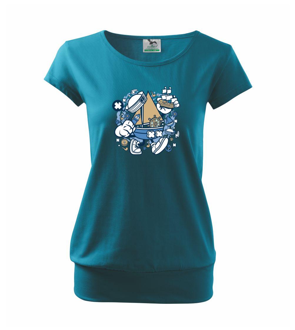 Triko pro námořníka, na kterém je kreslená plachetnice. Loďka v kombinaci s tímhle trikem je ideální parťák. Triko pro vodáka je skvělý dárek na vodu.