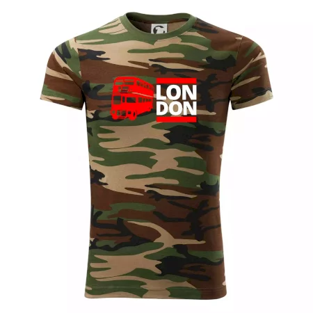 Tričko střední gramáže v barvách camouflage. Střih s bočními švy. Lem průkrčníku ze žebrového úpletu s přídavkem 5 % elastanu. Vnitřní část zadního průkrčníku začištěna páskou v barvě camouflage.