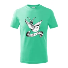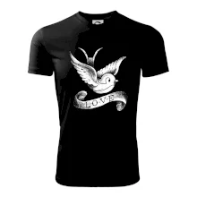 Tričko s krásným motivem pro radost, triko s holubicí, triko s nápisem LOVE.