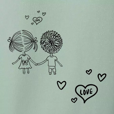 Trička nebo mikiny pro všechny zamilované páry. Na přední straně trika jsou srdce s nápisem love, vzadu je pak kluk a holka jak se drží za ruce. Kup si tohle triko, chyť svého partnera za ruku a vydejte se, kam vás srdce zavede. Valentýnský dárek pro zamilované páry.