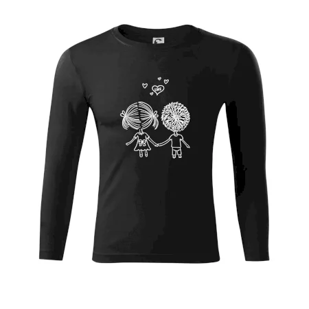 Trička nebo mikiny pro všechny zamilované páry. Na přední straně trika jsou srdce s nápisem love, vzadu je pak kluk a holka jak se drží za ruce. Kup si tohle triko, chyť svého partnera za ruku a vydejte se, kam vás srdce zavede. Valentýnský dárek pro zamilované páry.