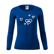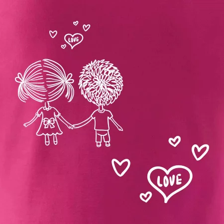 Trička nebo mikiny pro všechny zamilované páry. Na přední straně trika jsou srdce s nápisem love, vzadu je pak kluk a holka jak se drží za ruce. Kup si tohle triko, chyť svého partnera za ruku a vydejte se, kam vás srdce zavede. Valentýnský dárek pro zamilované páry.