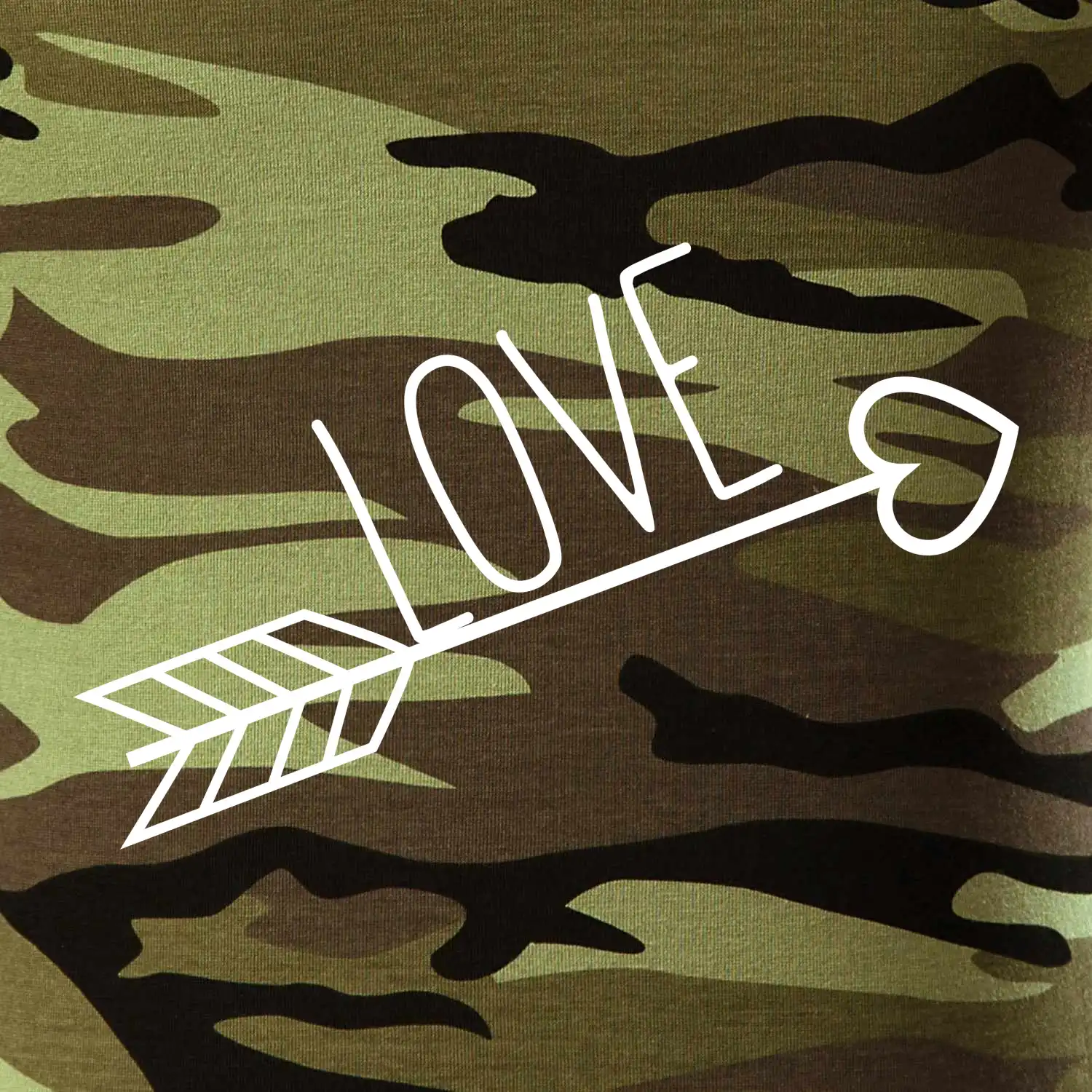 Tričko střední gramáže v barvách camouflage. Střih s bočními švy. Lem průkrčníku ze žebrového úpletu s přídavkem 5 % elastanu. Vnitřní část zadního průkrčníku začištěna páskou v barvě camouflage.