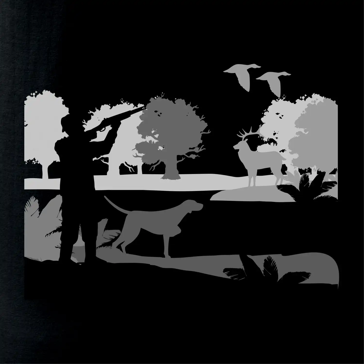 Lovec a ohař v lese