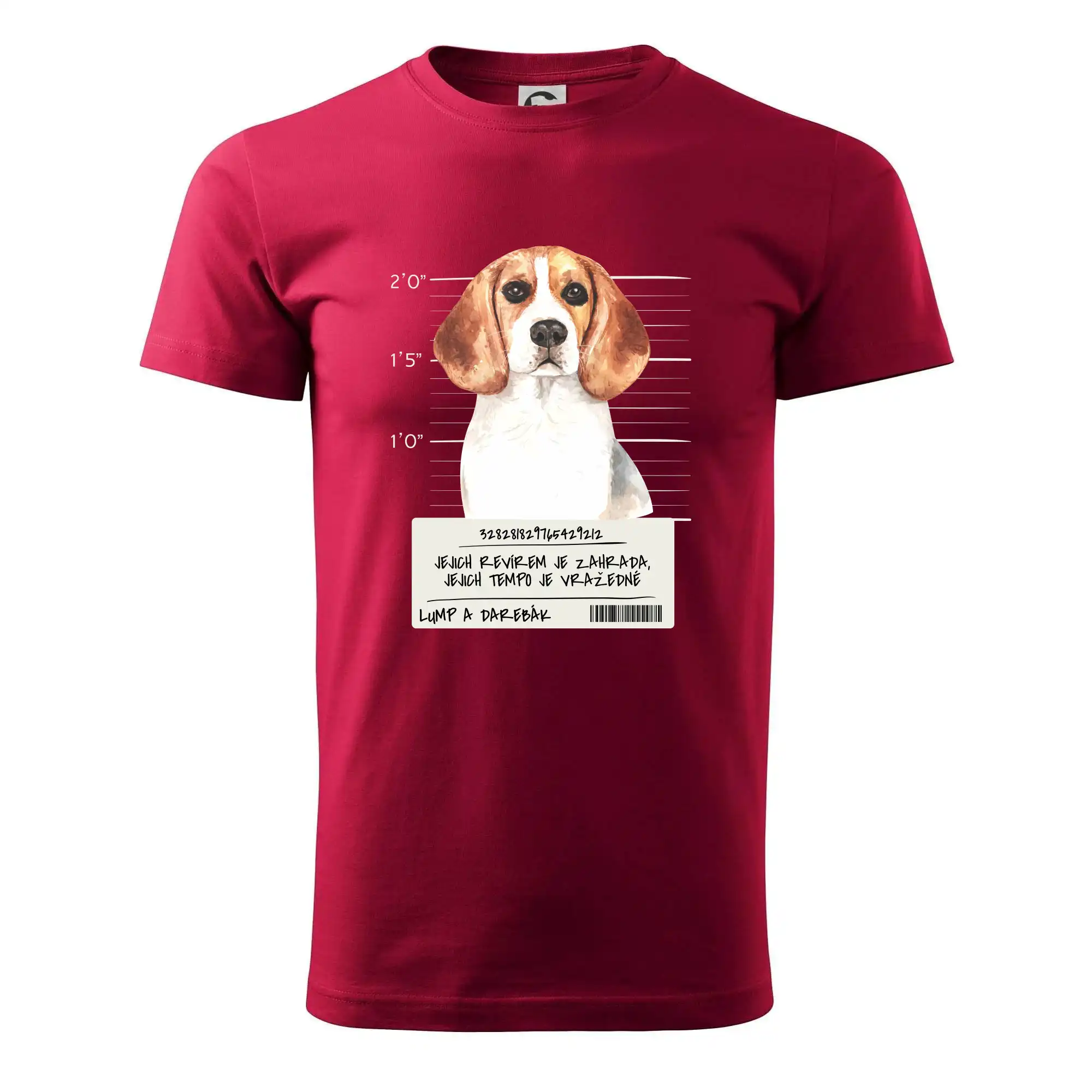 Triko pro pejskaře s nápisem "Jejich revírem je zahrada, jejich tempo je vražedné, lump a darebák". Triko, na kterém je pes beagle, by měl doma mít každý správný pejskař. Triko se psem je vhodný dárek pro pejskaře.