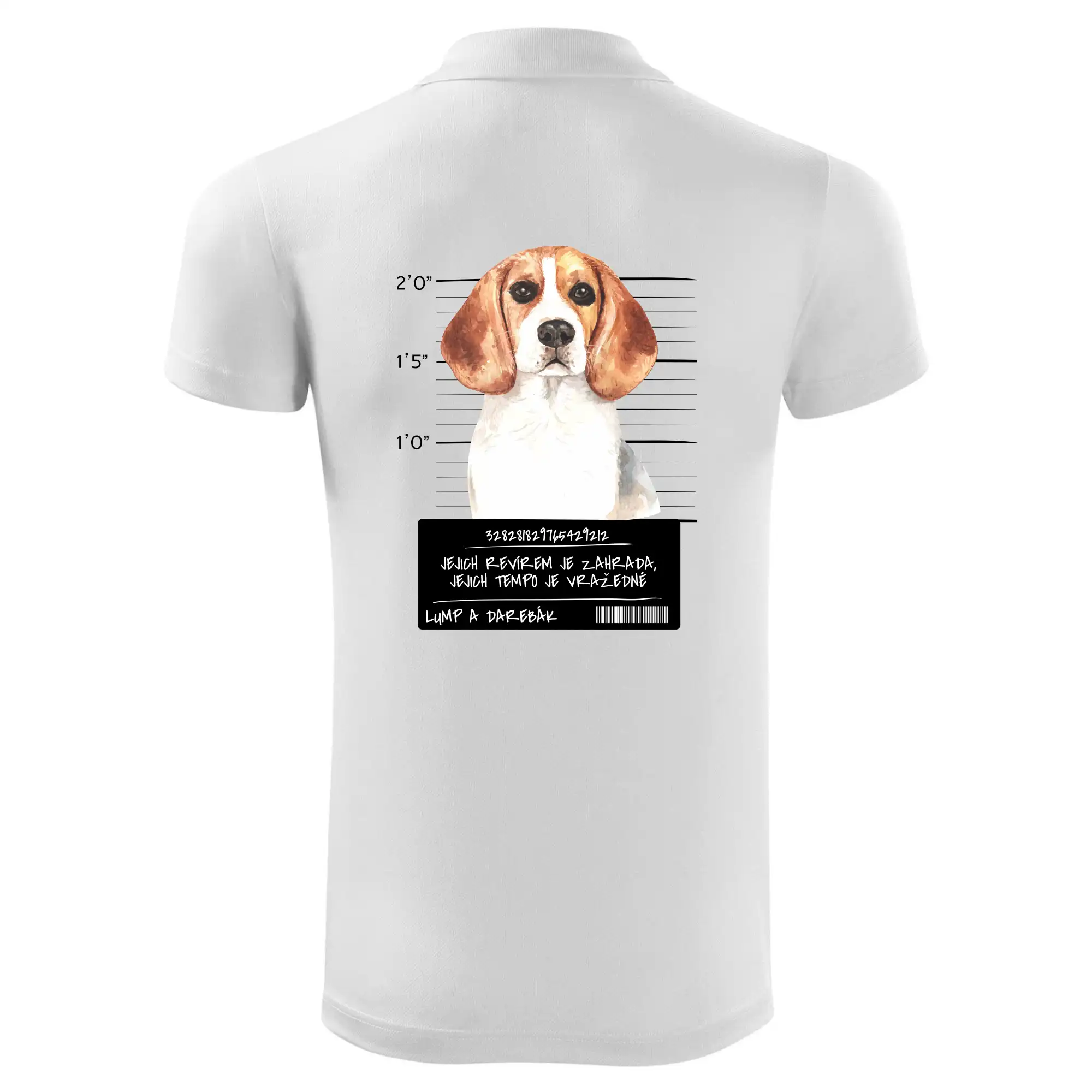 Triko pro pejskaře s nápisem "Jejich revírem je zahrada, jejich tempo je vražedné, lump a darebák". Triko, na kterém je pes beagle, by měl doma mít každý správný pejskař. Triko se psem je vhodný dárek pro pejskaře.