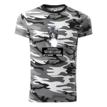 Triko pro pejskaře s nápisem "Jejich revírem je zahrada, jejich tempo je vražedné, lump a darebák". Triko, na kterém je pes border kolie, by měl doma mít každý správný pejskař. Triko se psem je vhodný dárek pro pejskaře, zejména pro majitele border collie. Borderka je hravá, pořiď si k ní hravé triko!