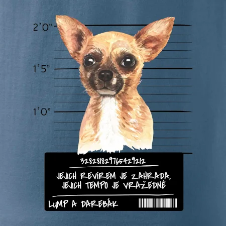 Triko pro pejskaře s nápisem "Jejich revírem je zahrada, jejich tempo je vražedné, lump a darebák". Triko, na kterém je pes čivava, by měl doma mít každý správný pejskař. Triko se psem je vhodný dárek pro pejskaře.