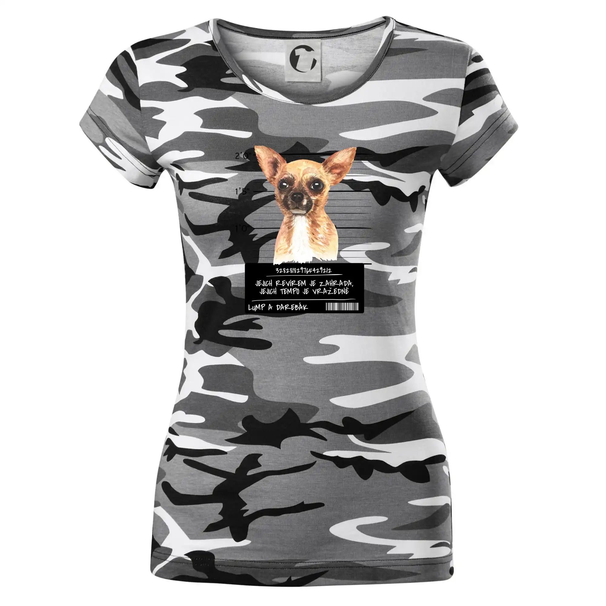 Triko pro pejskaře s nápisem "Jejich revírem je zahrada, jejich tempo je vražedné, lump a darebák". Triko, na kterém je pes čivava, by měl doma mít každý správný pejskař. Triko se psem je vhodný dárek pro pejskaře.