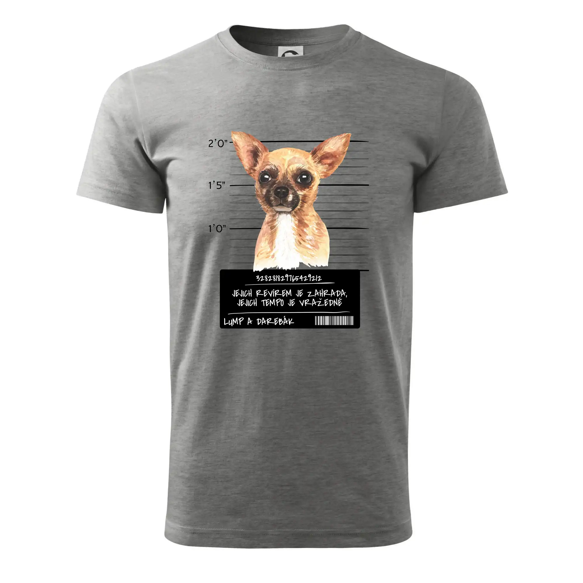 Triko pro pejskaře s nápisem "Jejich revírem je zahrada, jejich tempo je vražedné, lump a darebák". Triko, na kterém je pes čivava, by měl doma mít každý správný pejskař. Triko se psem je vhodný dárek pro pejskaře.