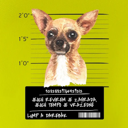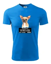 Triko pro pejskaře s nápisem "Jejich revírem je zahrada, jejich tempo je vražedné, lump a darebák". Triko, na kterém je pes čivava, by měl doma mít každý správný pejskař. Triko se psem je vhodný dárek pro pejskaře.