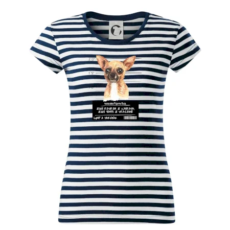 Triko pro pejskaře s nápisem "Jejich revírem je zahrada, jejich tempo je vražedné, lump a darebák". Triko, na kterém je pes čivava, by měl doma mít každý správný pejskař. Triko se psem je vhodný dárek pro pejskaře.