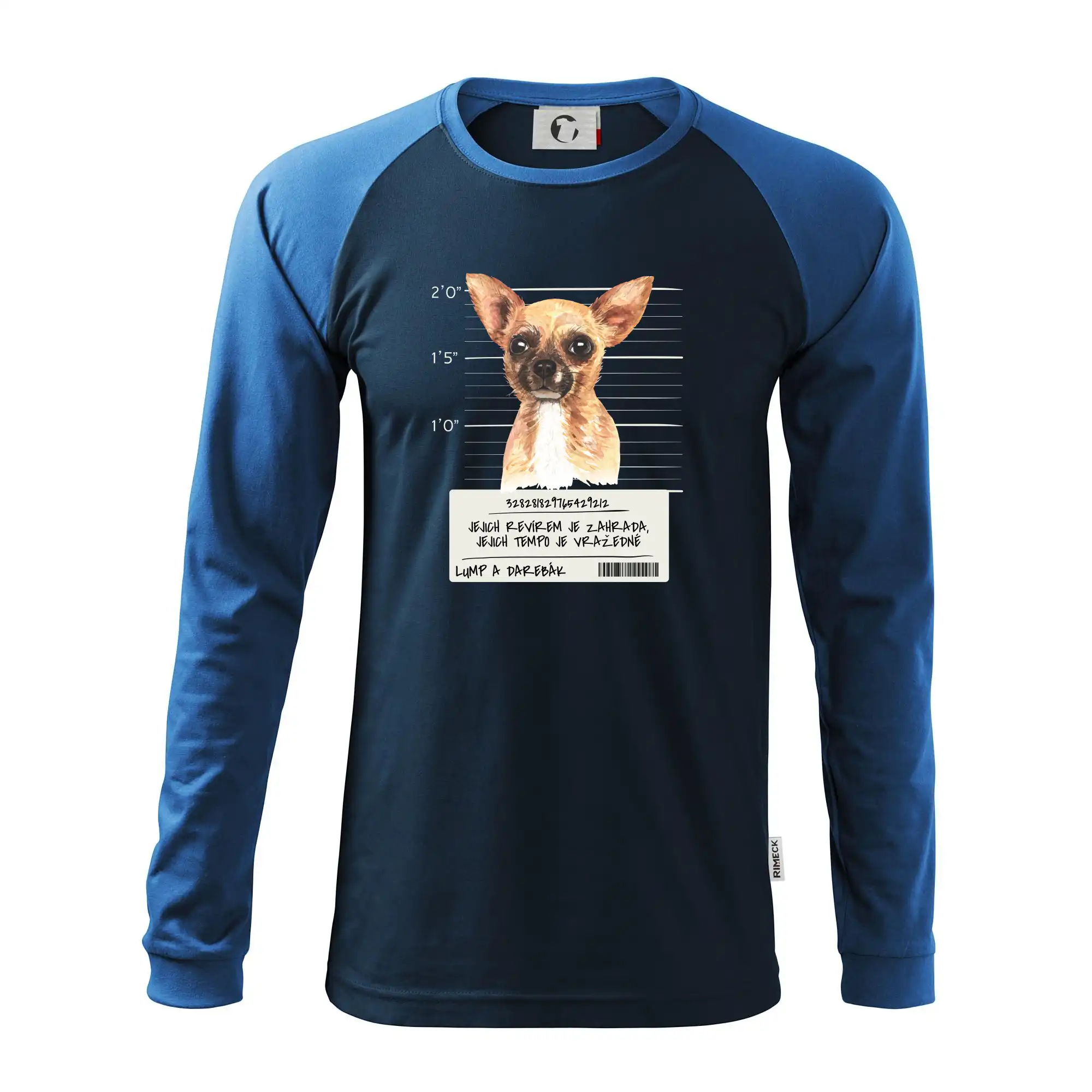 Triko pro pejskaře s nápisem "Jejich revírem je zahrada, jejich tempo je vražedné, lump a darebák". Triko, na kterém je pes čivava, by měl doma mít každý správný pejskař. Triko se psem je vhodný dárek pro pejskaře.