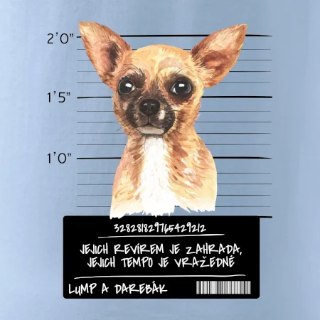 Triko pro pejskaře s nápisem "Jejich revírem je zahrada, jejich tempo je vražedné, lump a darebák". Triko, na kterém je pes čivava, by měl doma mít každý správný pejskař. Triko se psem je vhodný dárek pro pejskaře.