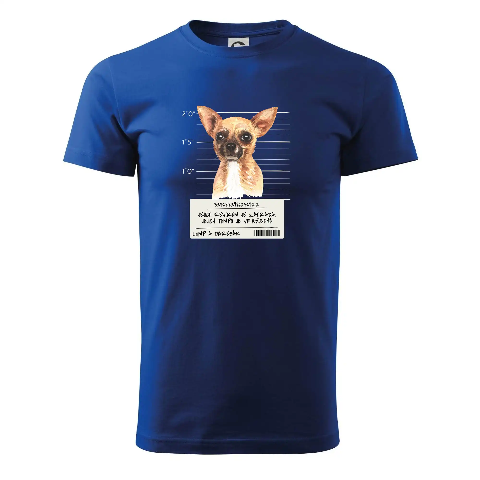 Triko pro pejskaře s nápisem "Jejich revírem je zahrada, jejich tempo je vražedné, lump a darebák". Triko, na kterém je pes čivava, by měl doma mít každý správný pejskař. Triko se psem je vhodný dárek pro pejskaře.