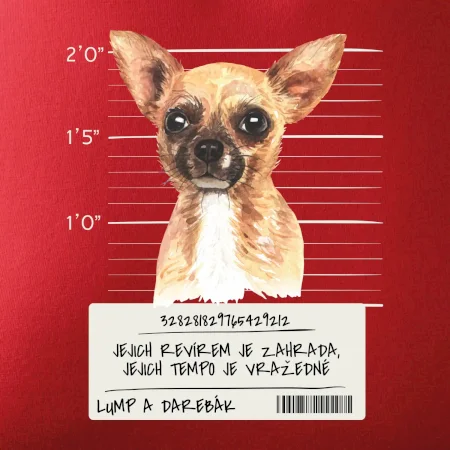 Triko pro pejskaře s nápisem "Jejich revírem je zahrada, jejich tempo je vražedné, lump a darebák". Triko, na kterém je pes čivava, by měl doma mít každý správný pejskař. Triko se psem je vhodný dárek pro pejskaře.