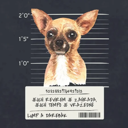 Triko pro pejskaře s nápisem "Jejich revírem je zahrada, jejich tempo je vražedné, lump a darebák". Triko, na kterém je pes čivava, by měl doma mít každý správný pejskař. Triko se psem je vhodný dárek pro pejskaře.