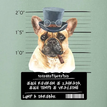 Triko pro pejskaře s nápisem "Jejich revírem je zahrada, jejich tempo je vražedné, lump a darebák". Triko, na kterém je pes francouzský buldoček, by měl doma mít každý správný pejskař. Triko se psem je vhodný dárek pro pejskaře.