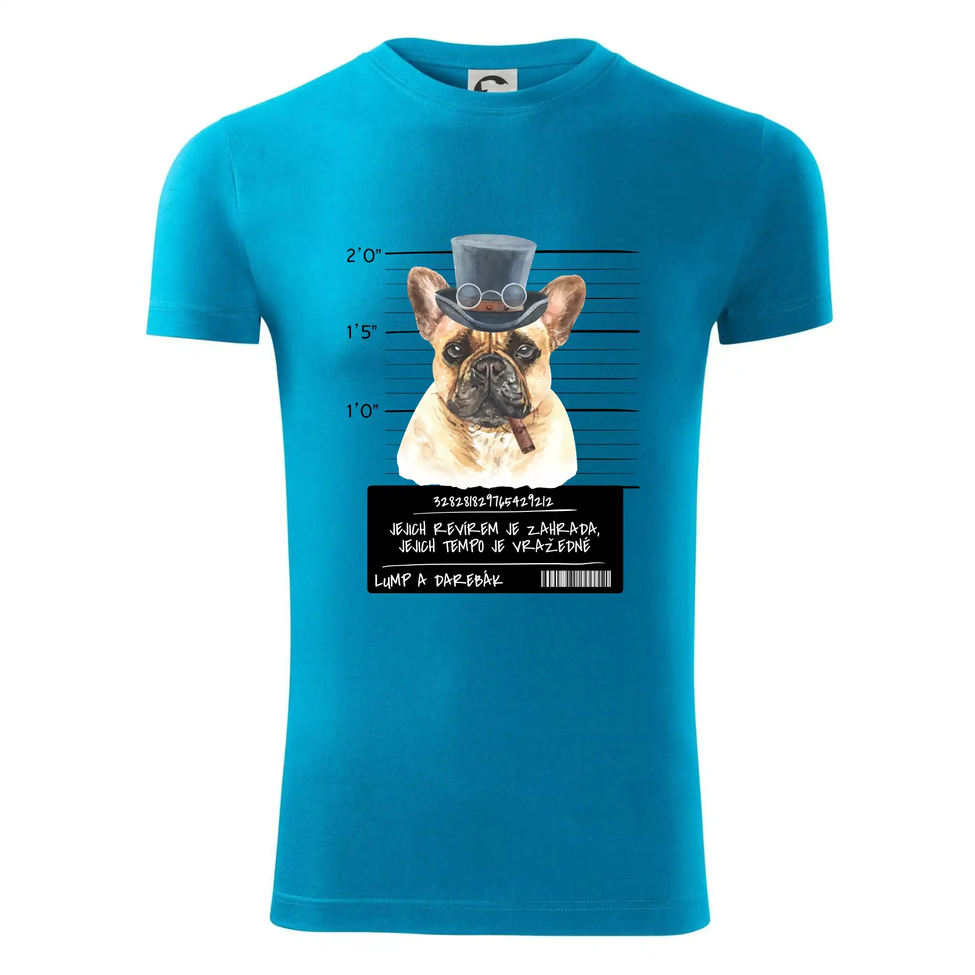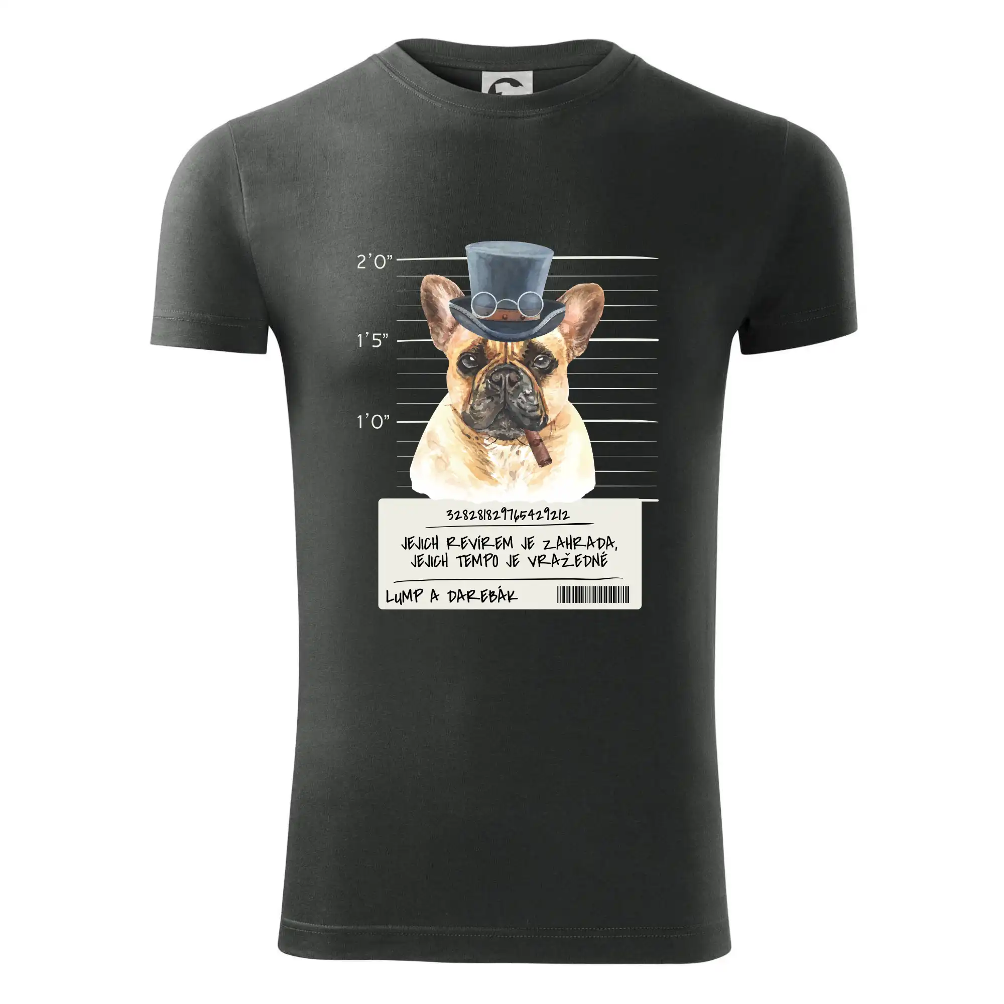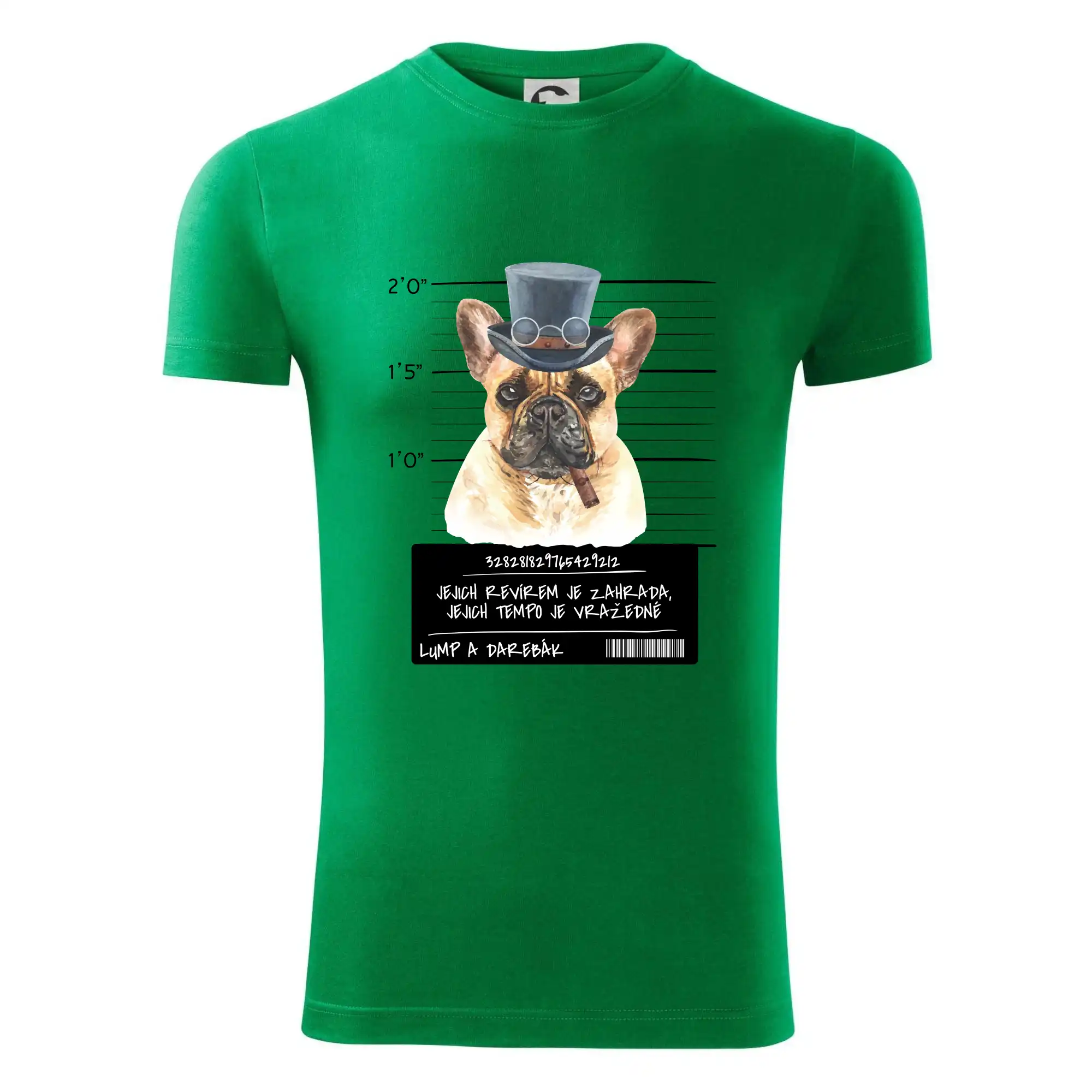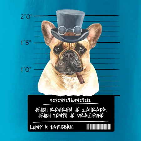 Triko pro pejskaře s nápisem "Jejich revírem je zahrada, jejich tempo je vražedné, lump a darebák". Triko, na kterém je pes francouzský buldoček, by měl doma mít každý správný pejskař. Triko se psem je vhodný dárek pro pejskaře.
