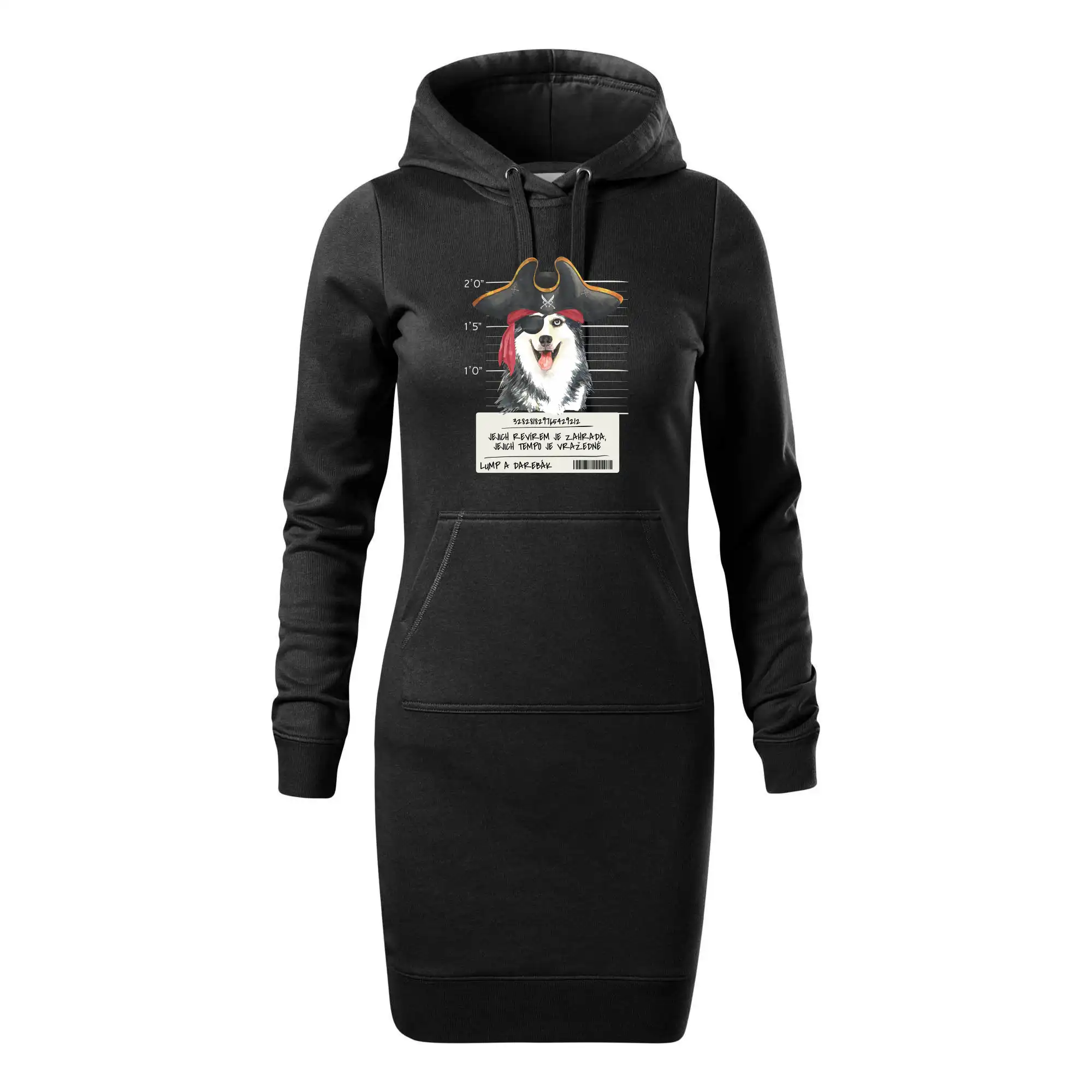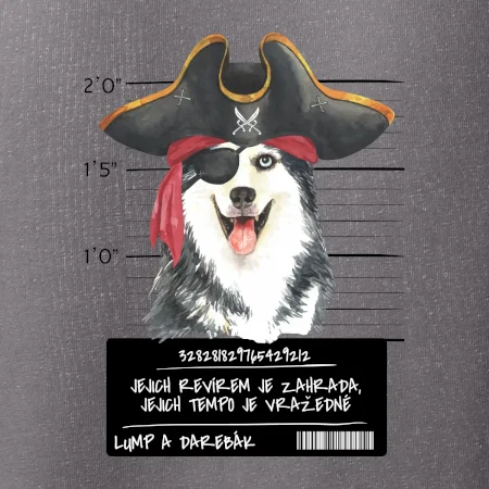 Triko pro pejskaře s nápisem "Jejich revírem je zahrada, jejich tempo je vražedné, lump a darebák". Triko, na kterém je pirát pes husky, by měl doma mít každý správný pejskař. Triko se psem je vhodný dárek pro pejskaře.