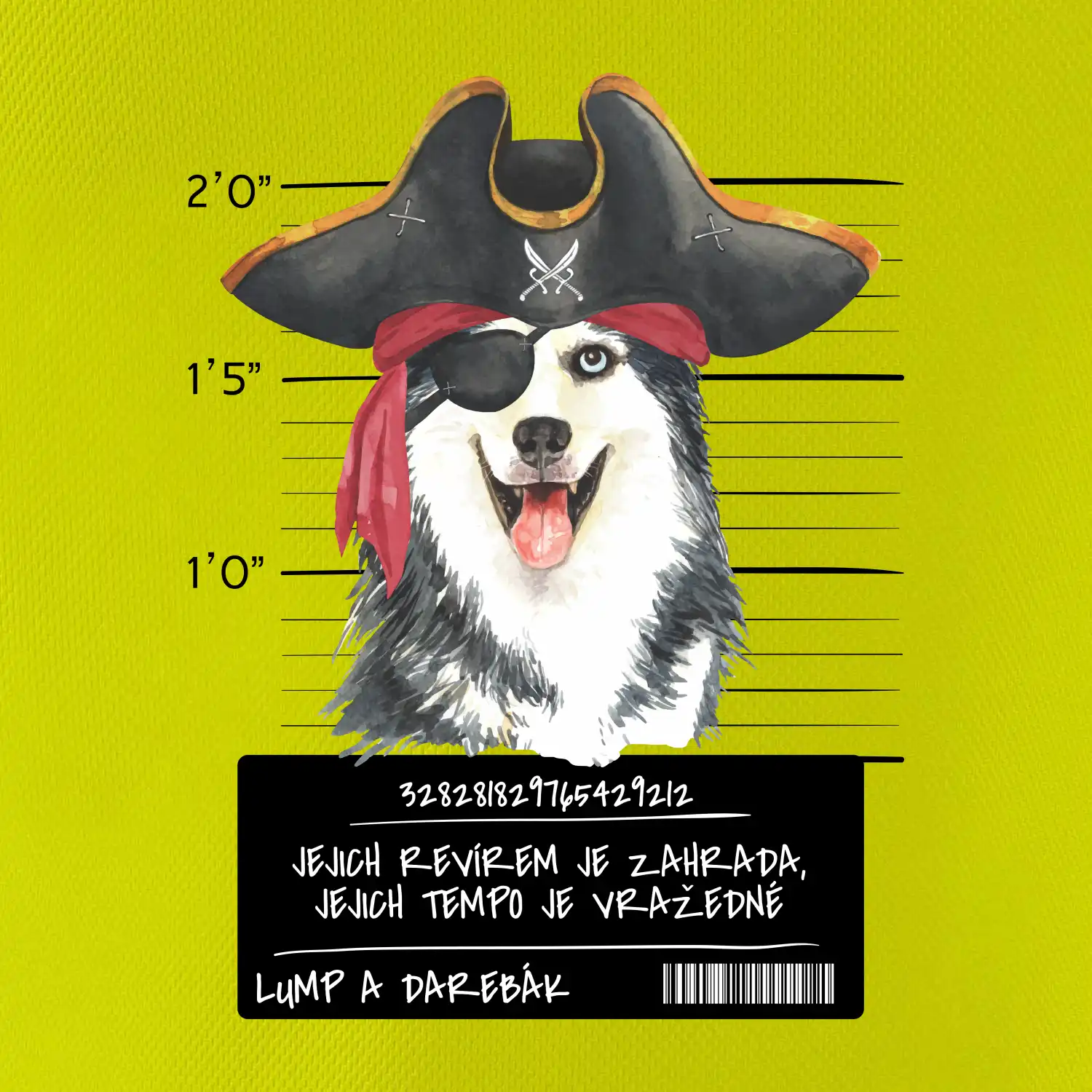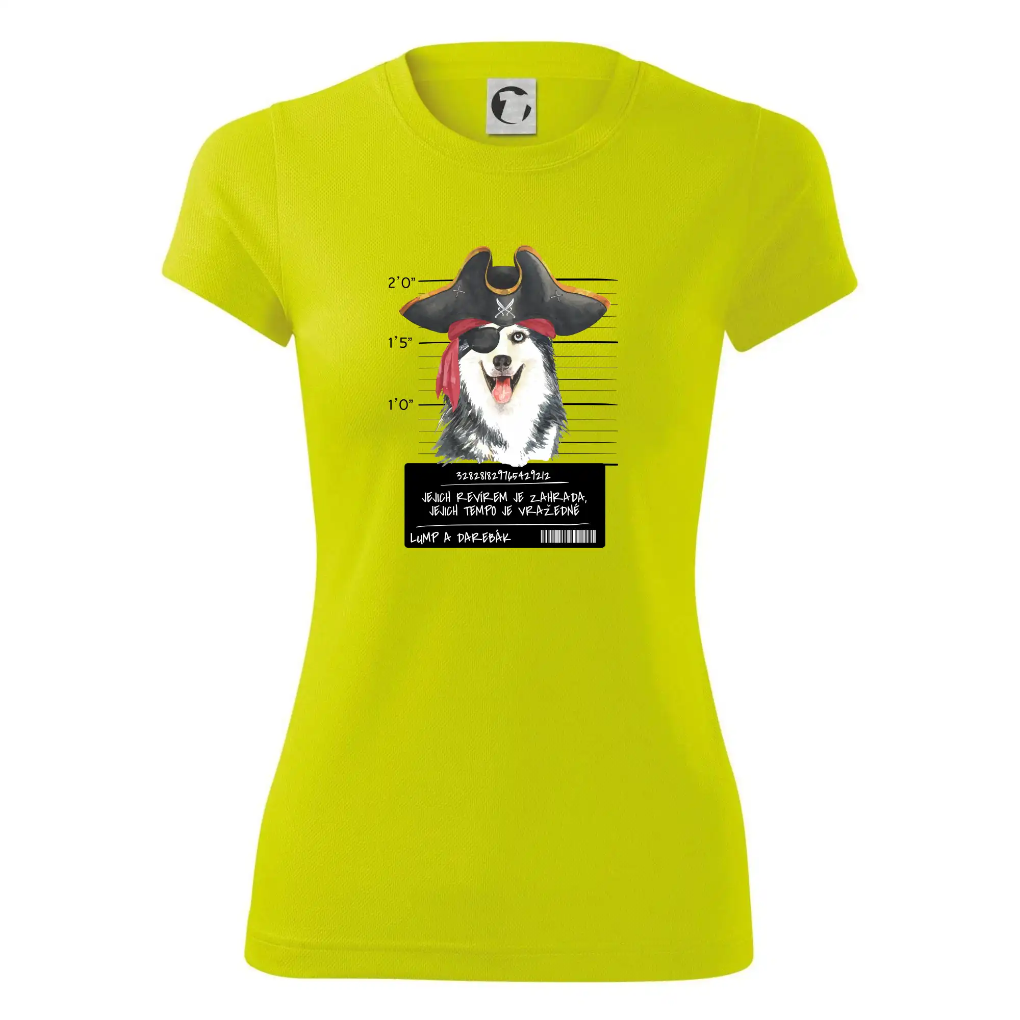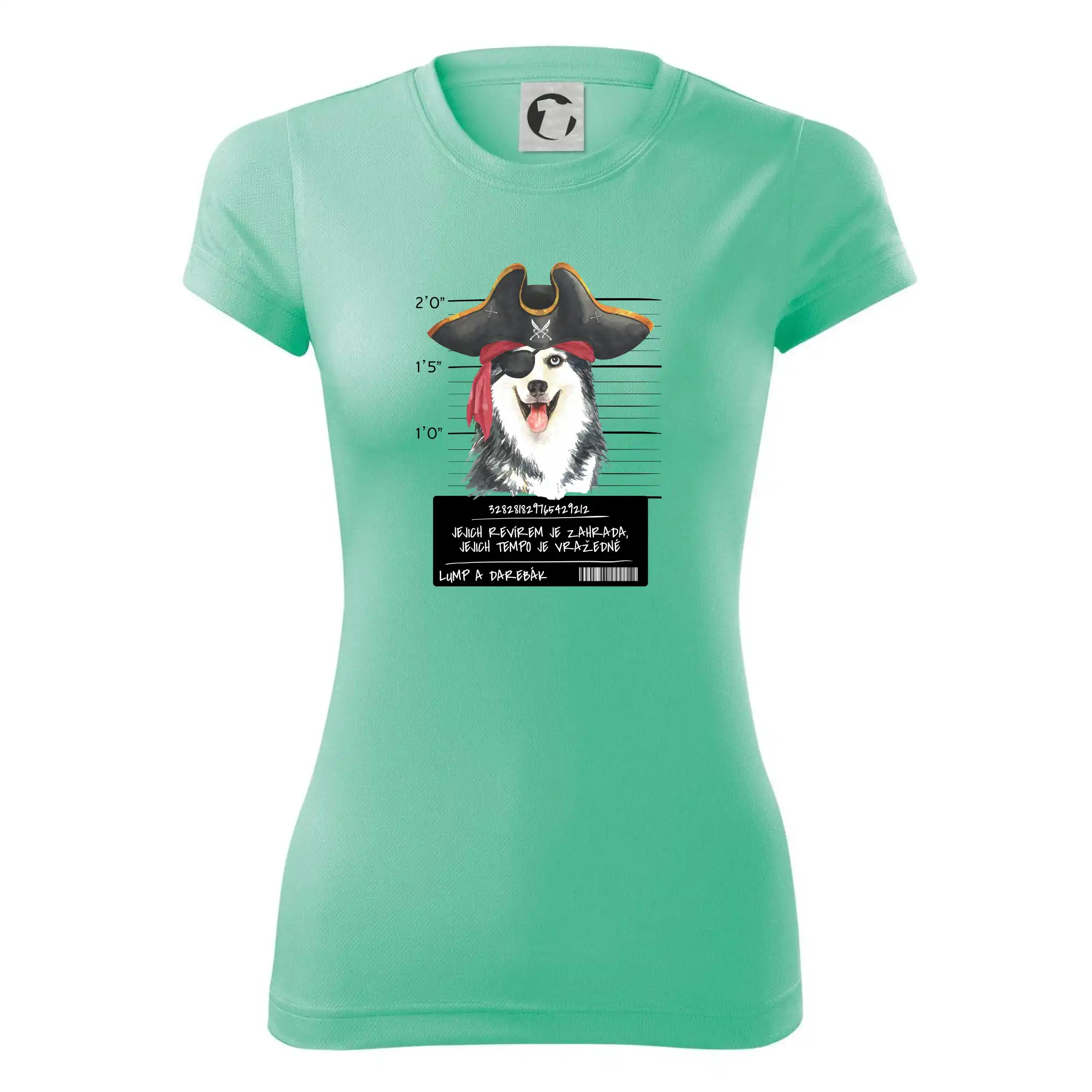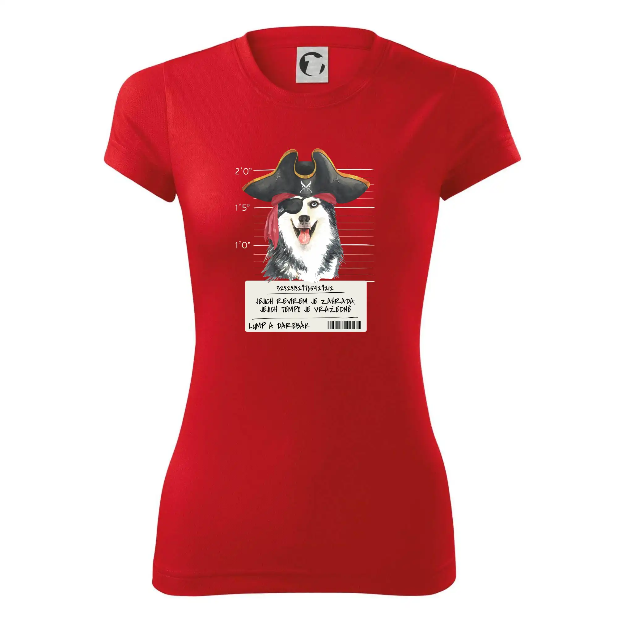 Triko pro pejskaře s nápisem "Jejich revírem je zahrada, jejich tempo je vražedné, lump a darebák". Triko, na kterém je pirát pes husky, by měl doma mít každý správný pejskař. Triko se psem je vhodný dárek pro pejskaře.