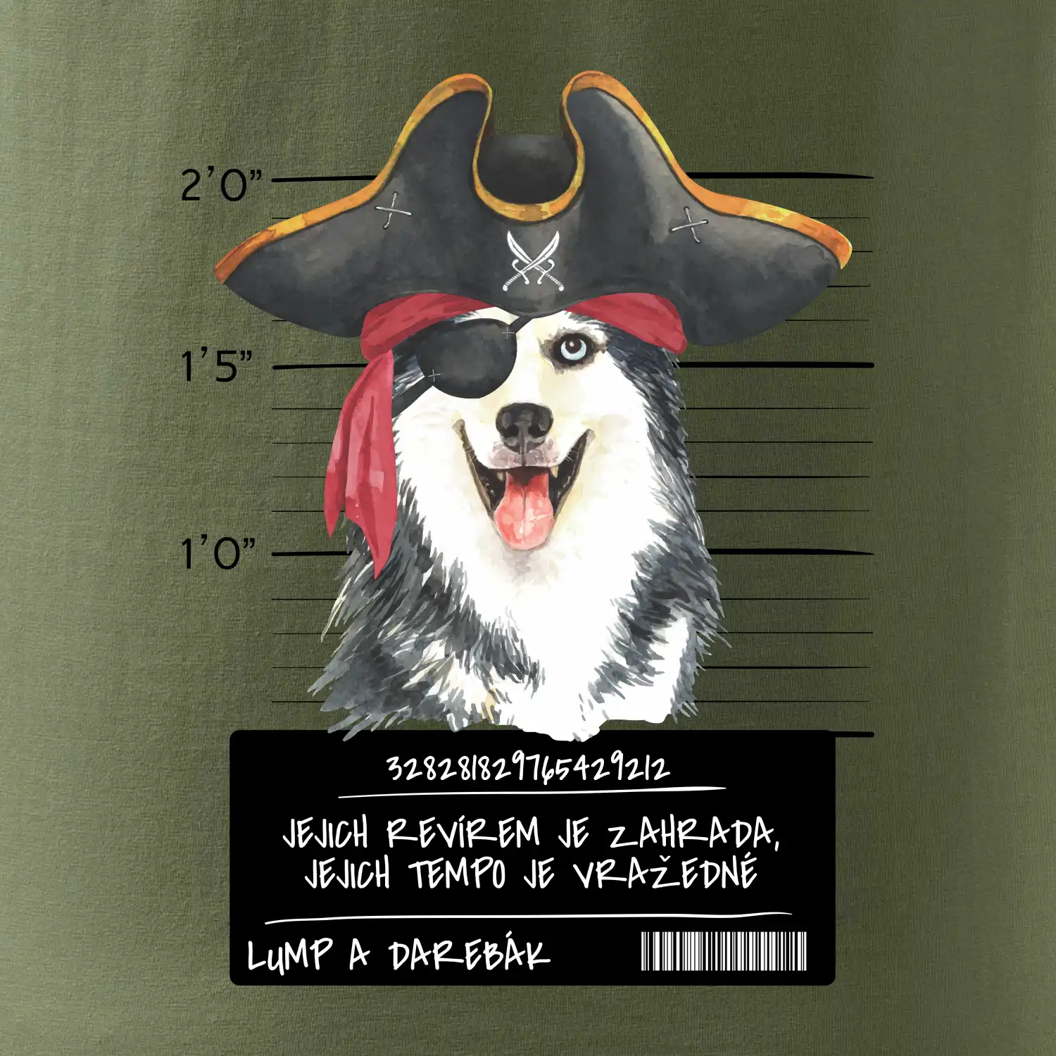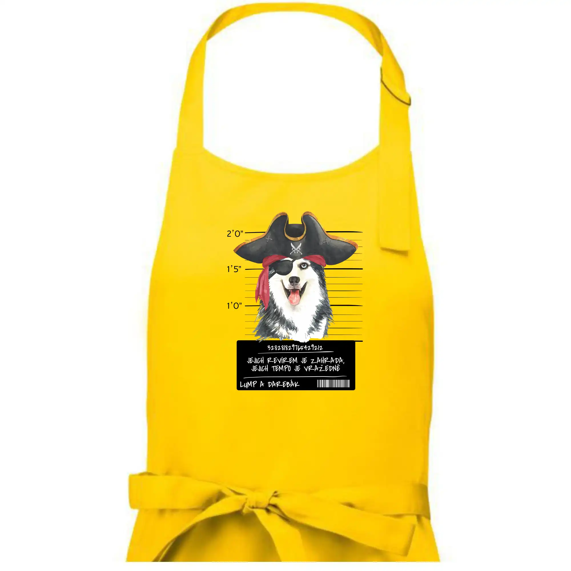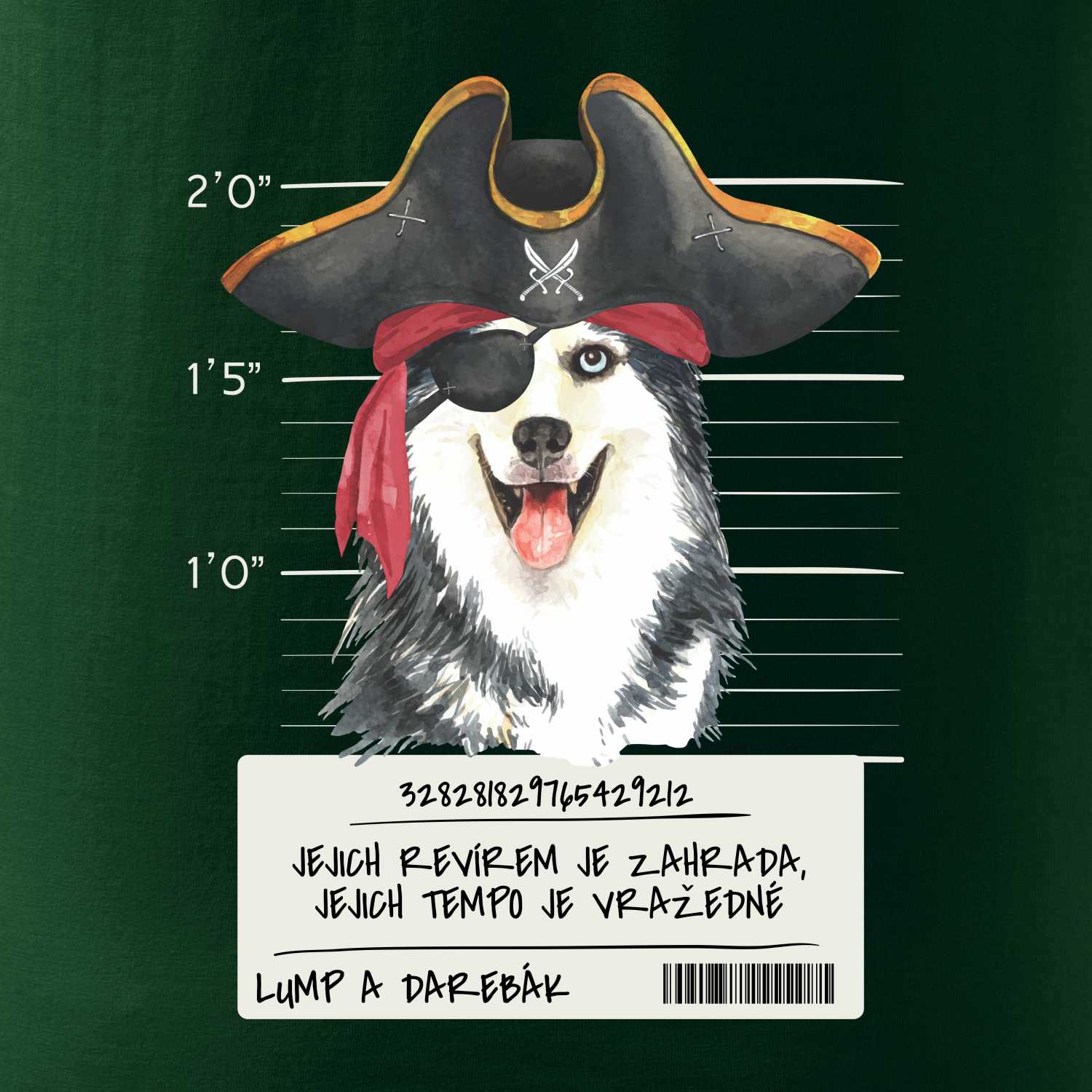Triko pro pejskaře s nápisem "Jejich revírem je zahrada, jejich tempo je vražedné, lump a darebák". Triko, na kterém je pirát pes husky, by měl doma mít každý správný pejskař. Triko se psem je vhodný dárek pro pejskaře.