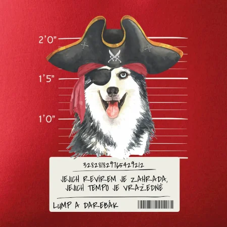 Triko pro pejskaře s nápisem "Jejich revírem je zahrada, jejich tempo je vražedné, lump a darebák". Triko, na kterém je pirát pes husky, by měl doma mít každý správný pejskař. Triko se psem je vhodný dárek pro pejskaře.