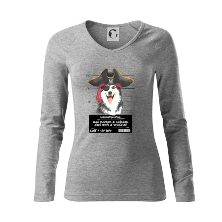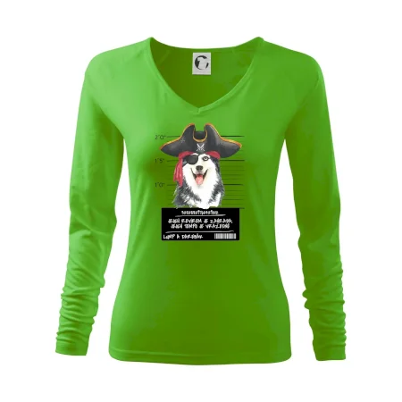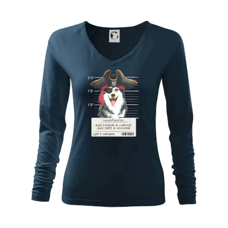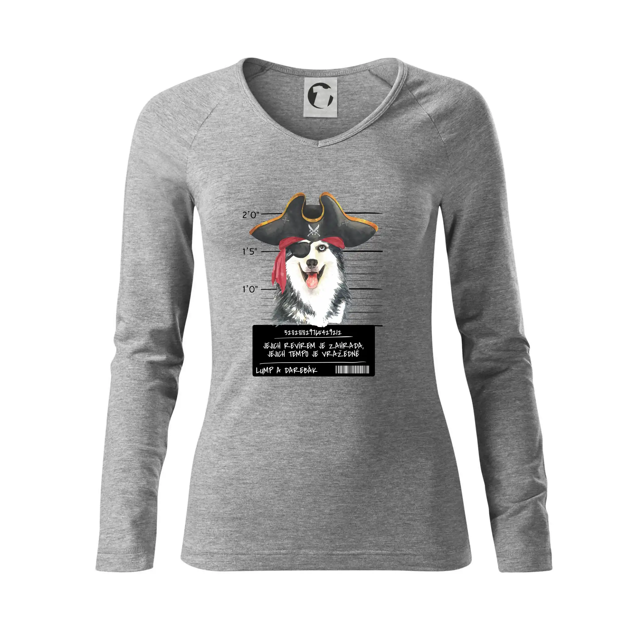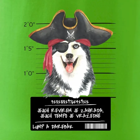 Triko pro pejskaře s nápisem "Jejich revírem je zahrada, jejich tempo je vražedné, lump a darebák". Triko, na kterém je pirát pes husky, by měl doma mít každý správný pejskař. Triko se psem je vhodný dárek pro pejskaře.