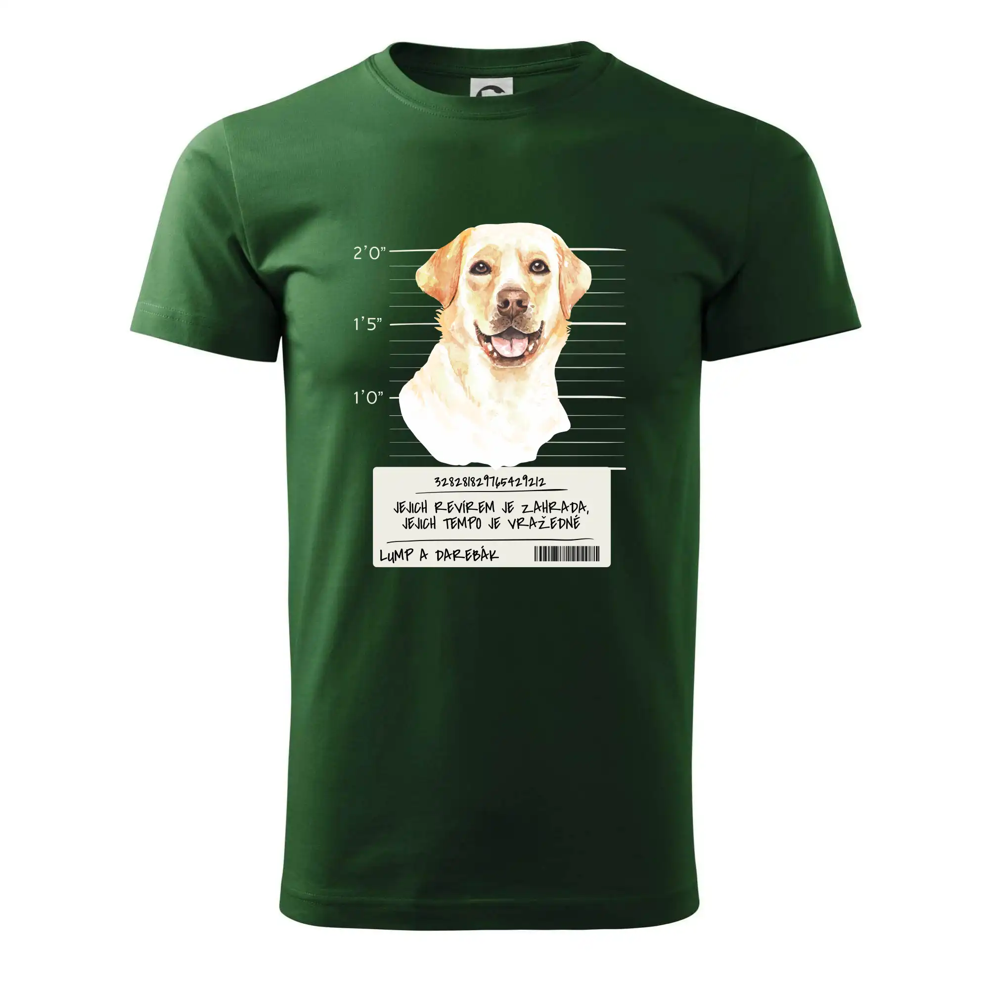 Triko pro pejskaře s nápisem "Jejich revírem je zahrada, jejich tempo je vražedné, lump a darebák". Triko, na kterém je pes labrador, by měl doma mít každý správný pejskař. Triko se psem, na kterém je labradorský retrívr, je vhodný dárek pro pejskaře.