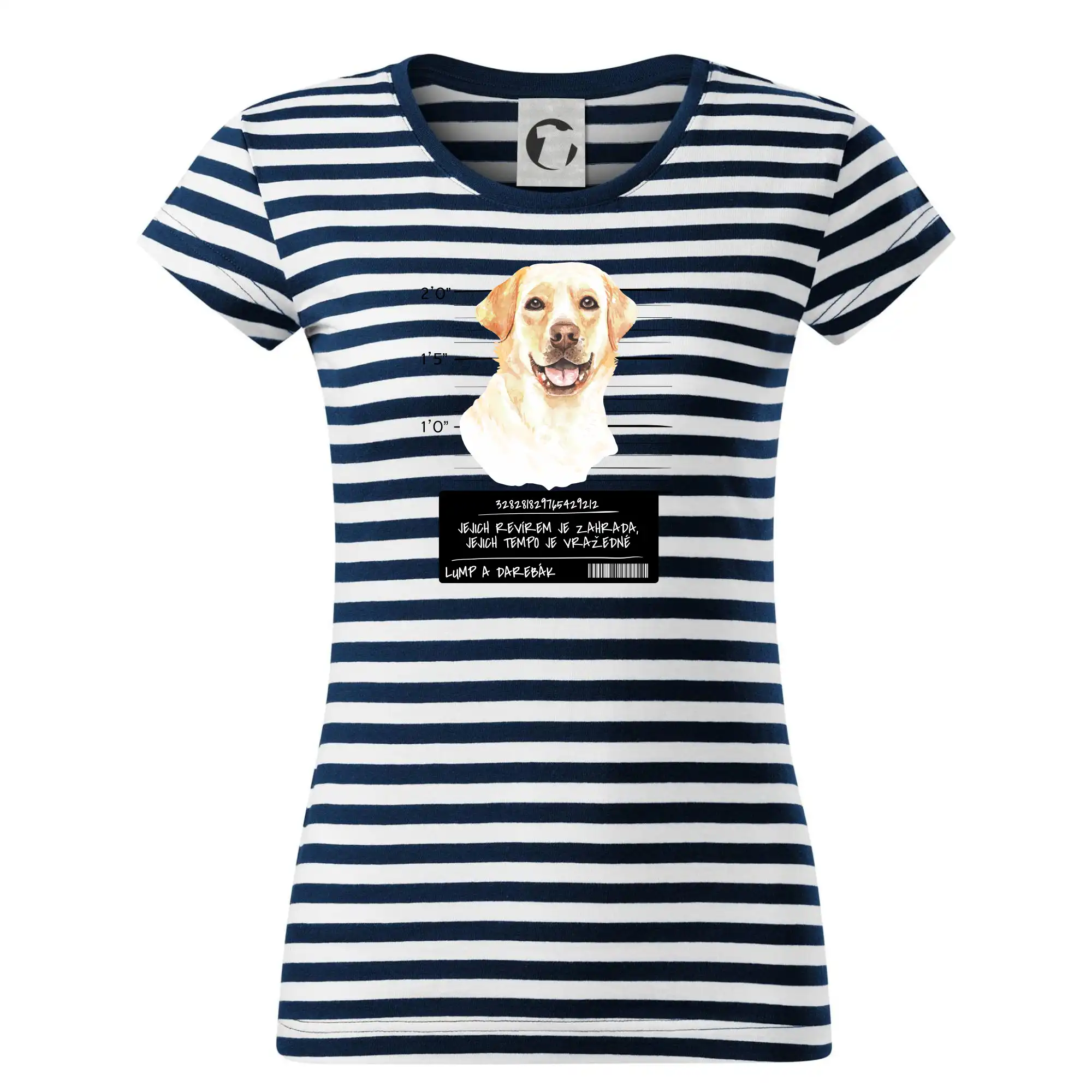 Triko pro pejskaře s nápisem "Jejich revírem je zahrada, jejich tempo je vražedné, lump a darebák". Triko, na kterém je pes labrador, by měl doma mít každý správný pejskař. Triko se psem, na kterém je labradorský retrívr, je vhodný dárek pro pejskaře.
