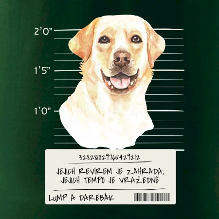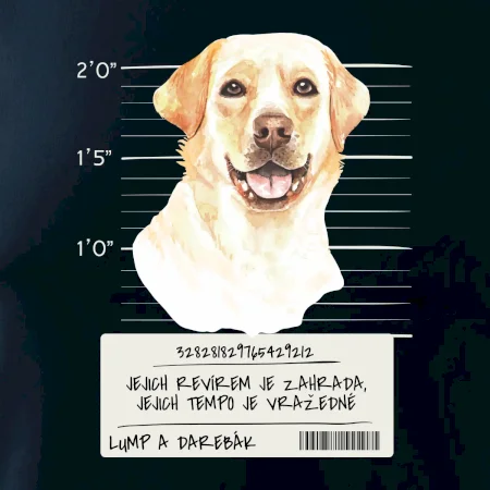 Triko pro pejskaře s nápisem "Jejich revírem je zahrada, jejich tempo je vražedné, lump a darebák". Triko, na kterém je pes labrador, by měl doma mít každý správný pejskař. Triko se psem, na kterém je labradorský retrívr, je vhodný dárek pro pejskaře.