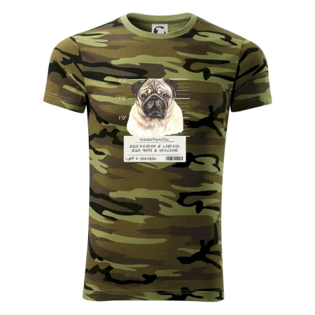 Tričko střední gramáže v barvách camouflage. Střih s bočními švy. Lem průkrčníku ze žebrového úpletu s přídavkem 5 % elastanu. Vnitřní část zadního průkrčníku začištěna páskou v barvě camouflage.