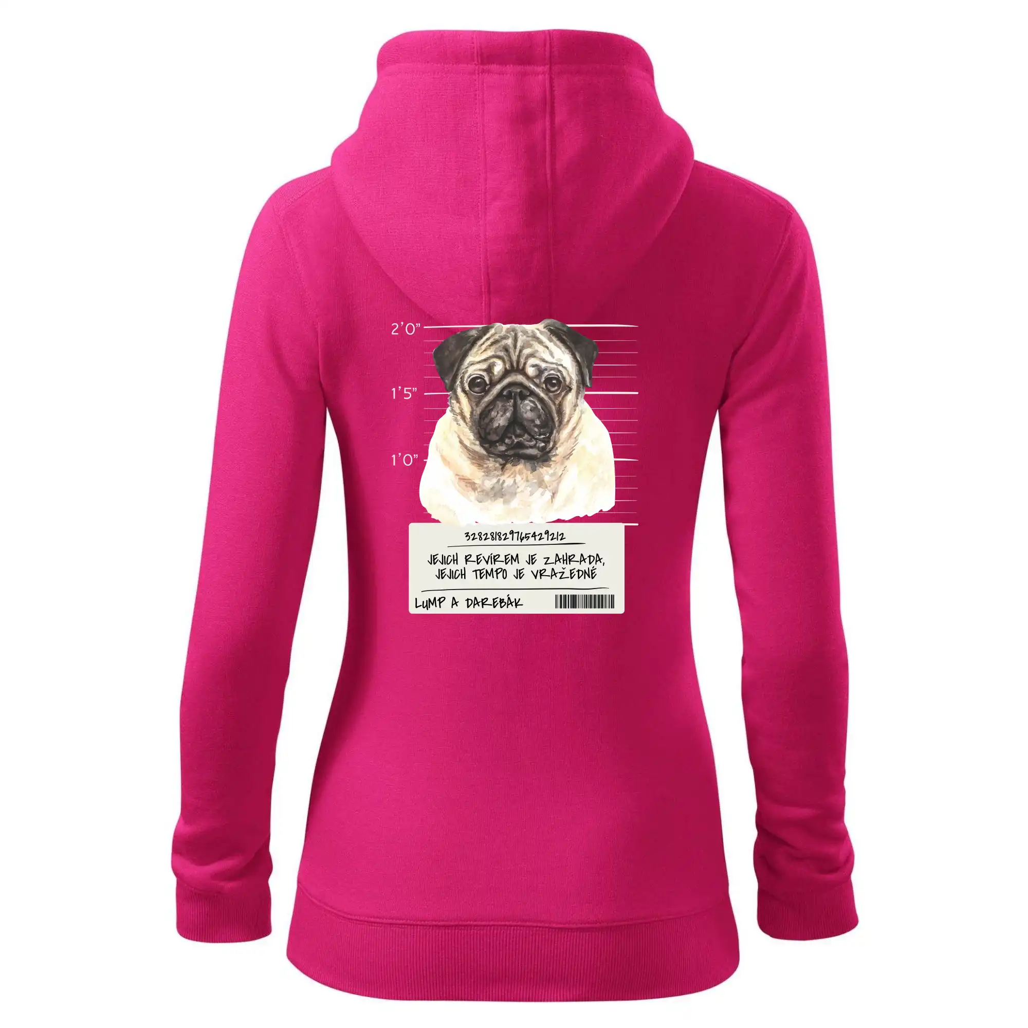 Triko pro pejskaře s nápisem "Jejich revírem je zahrada, jejich tempo je vražedné, lump a darebák". Triko, na kterém je pes mops, by měl doma mít každý správný pejskař. Triko se psem je vhodný dárek pro pejskaře.