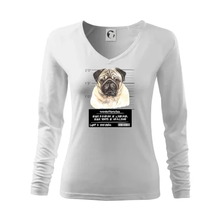 Triko pro pejskaře s nápisem "Jejich revírem je zahrada, jejich tempo je vražedné, lump a darebák". Triko, na kterém je pes mops, by měl doma mít každý správný pejskař. Triko se psem je vhodný dárek pro pejskaře.