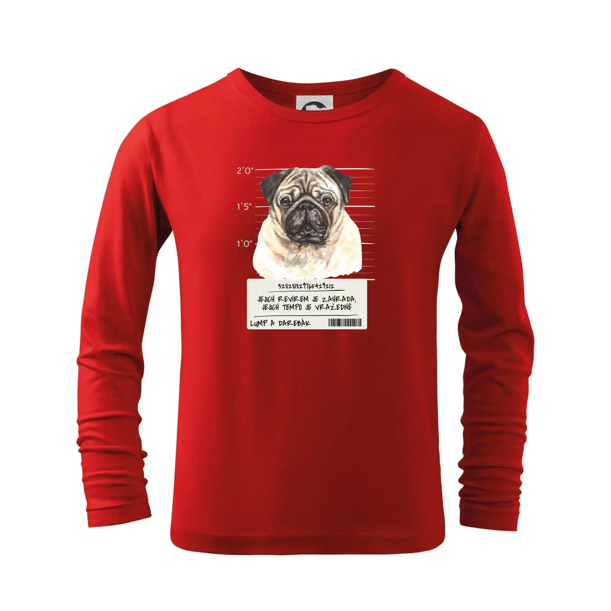 Triko pro pejskaře s nápisem "Jejich revírem je zahrada, jejich tempo je vražedné, lump a darebák". Triko, na kterém je pes mops, by měl doma mít každý správný pejskař. Triko se psem je vhodný dárek pro pejskaře.