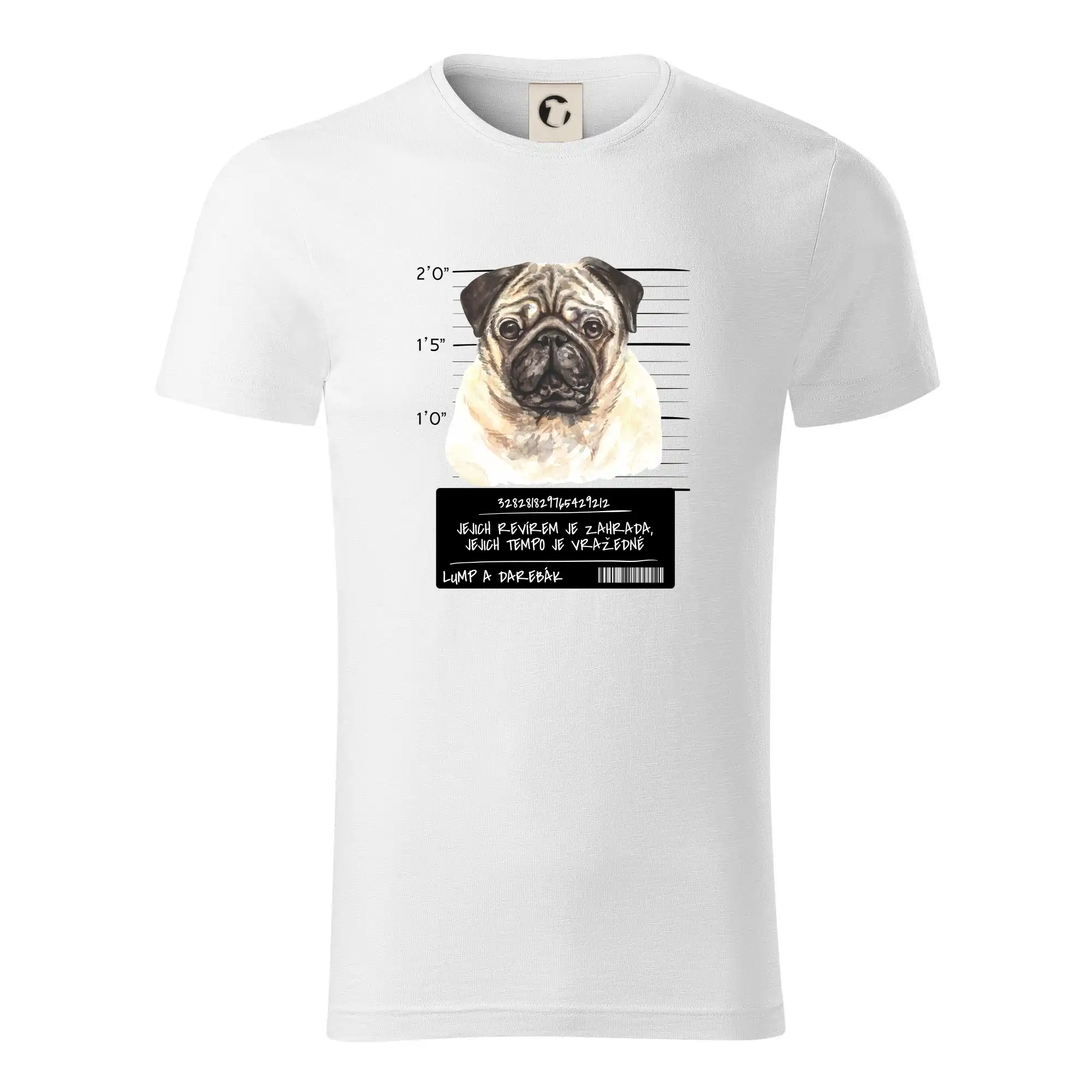 Triko pro pejskaře s nápisem "Jejich revírem je zahrada, jejich tempo je vražedné, lump a darebák". Triko, na kterém je pes mops, by měl doma mít každý správný pejskař. Triko se psem je vhodný dárek pro pejskaře.