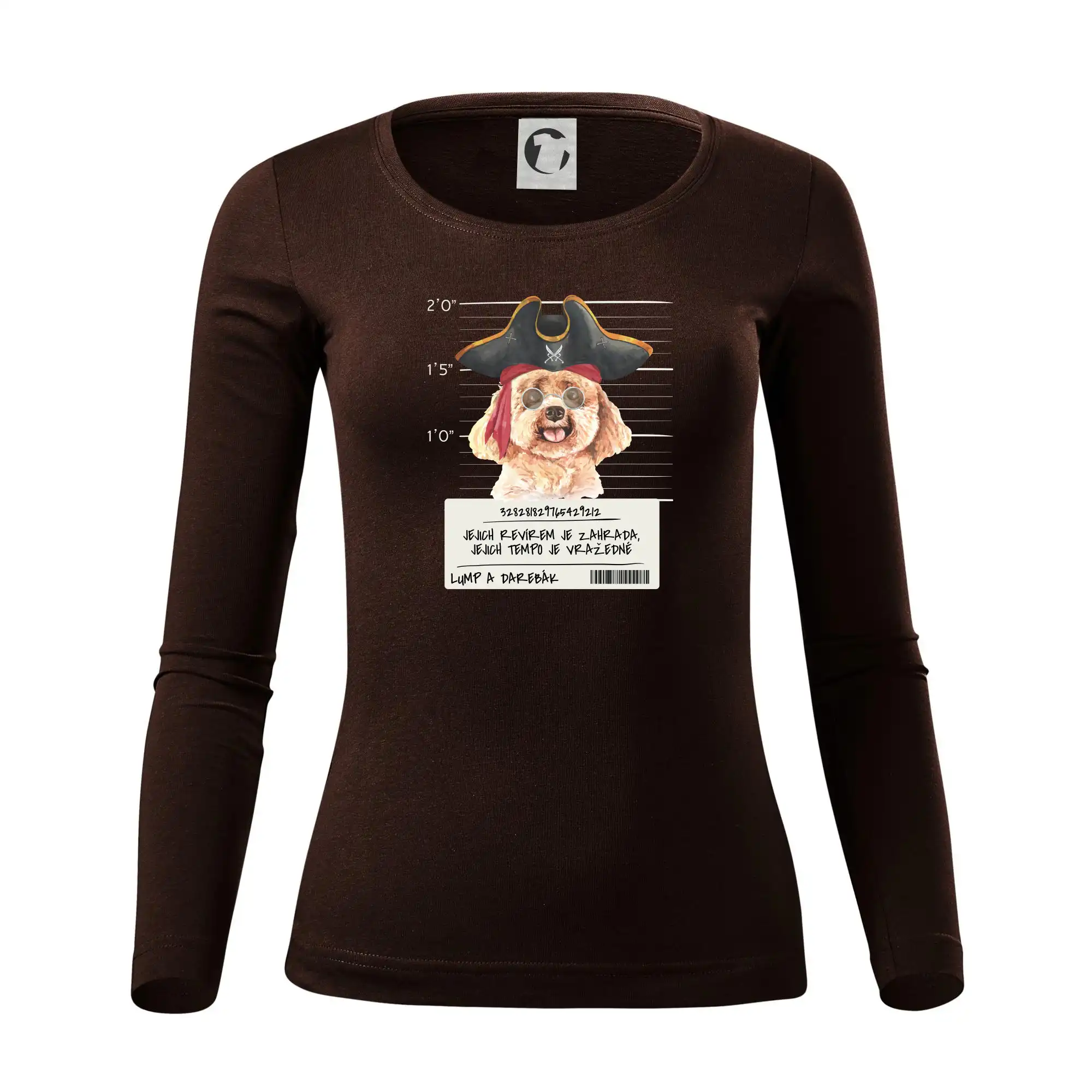 Triko pro pejskaře s nápisem "Jejich revírem je zahrada, jejich tempo je vražedné, lump a darebák". Triko, na kterém je pirát pes pudl, by měl doma mít každý správný pejskař. Triko se psem je vhodný dárek pro pejskaře.