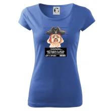 Triko pro pejskaře s nápisem "Jejich revírem je zahrada, jejich tempo je vražedné, lump a darebák". Triko, na kterém je pirát pes pudl, by měl doma mít každý správný pejskař. Triko se psem je vhodný dárek pro pejskaře.