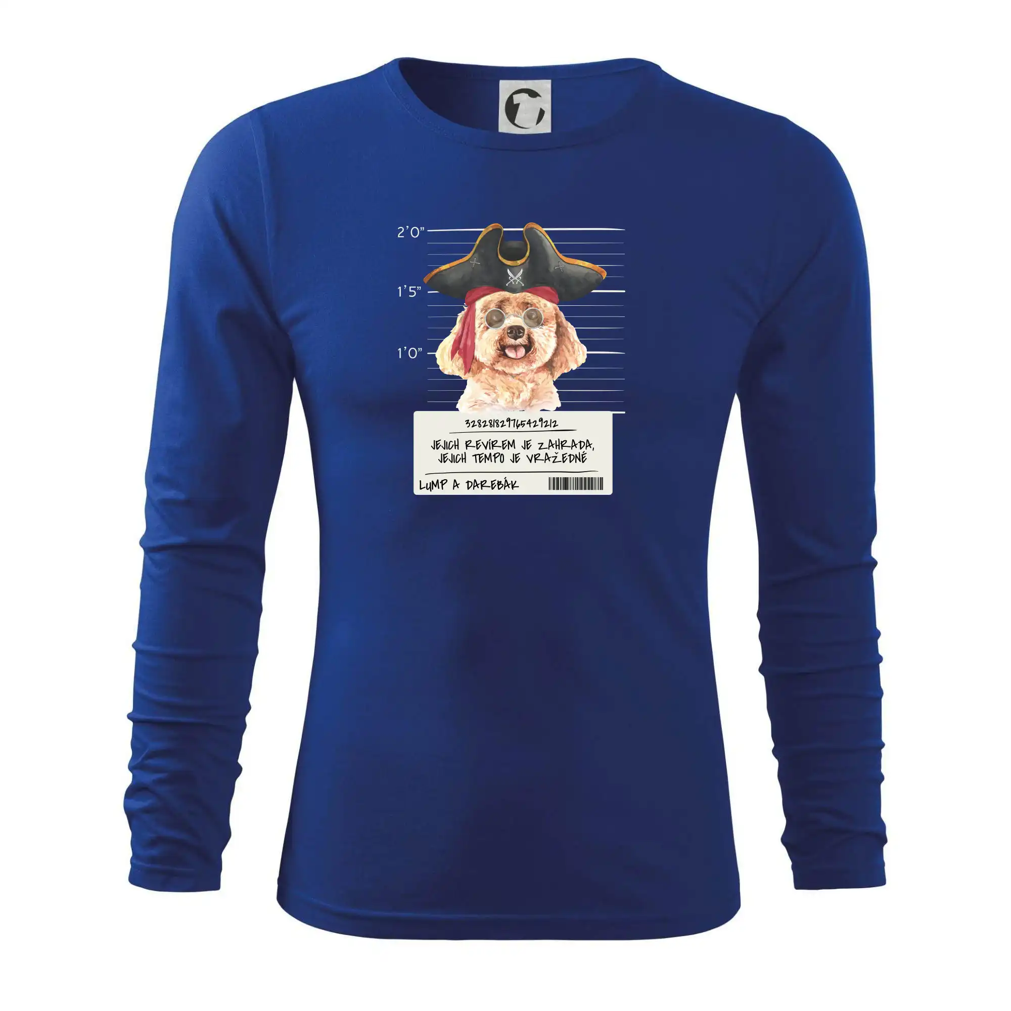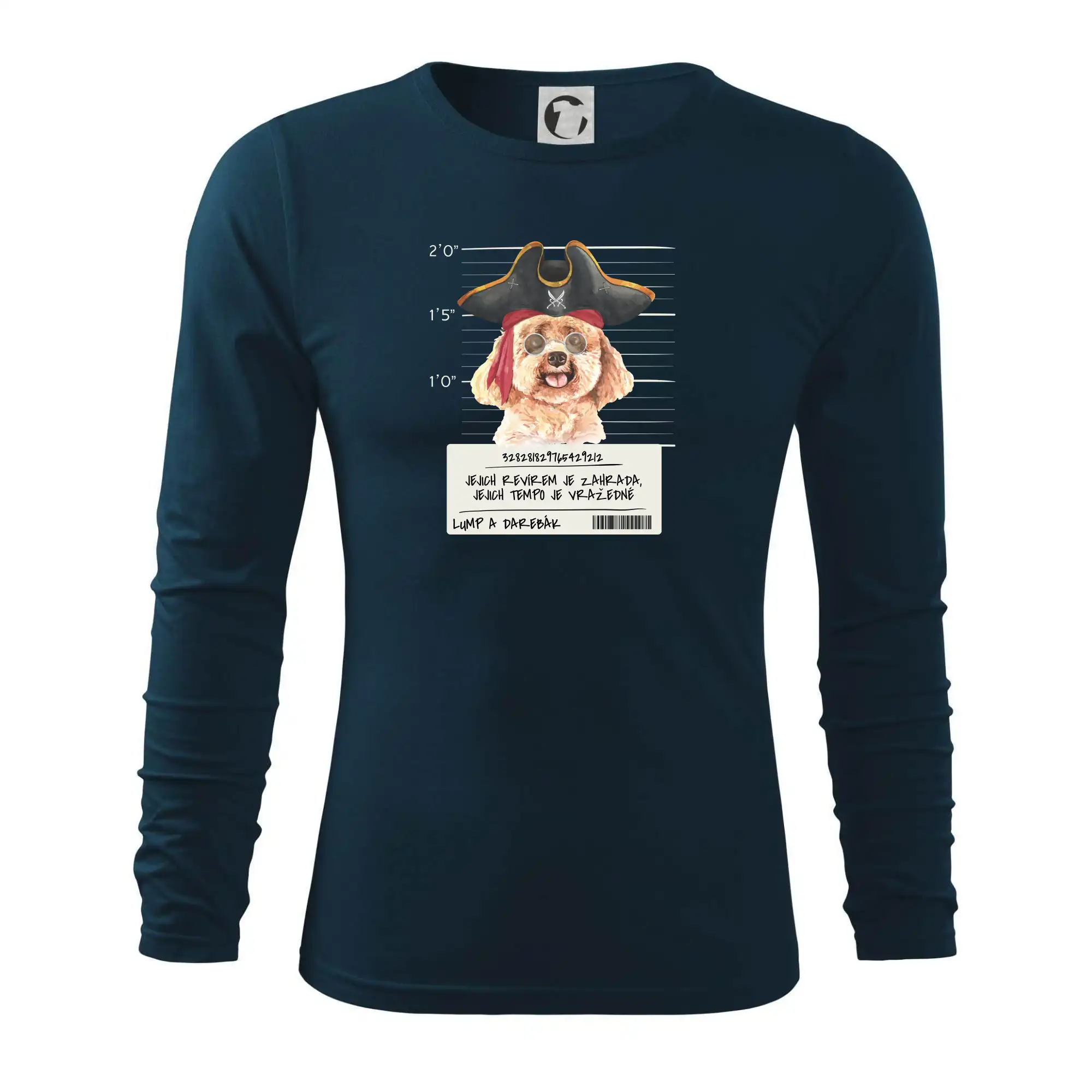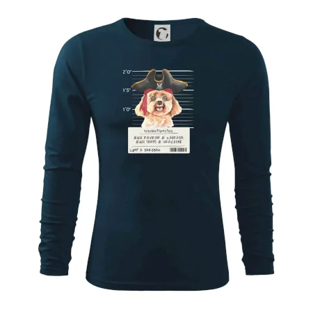 Triko pro pejskaře s nápisem "Jejich revírem je zahrada, jejich tempo je vražedné, lump a darebák". Triko, na kterém je pirát pes pudl, by měl doma mít každý správný pejskař. Triko se psem je vhodný dárek pro pejskaře.