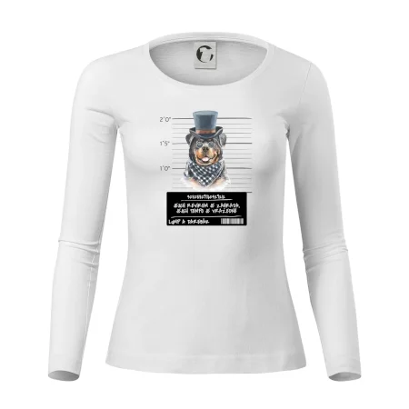 Triko pro pejskaře s nápisem "Jejich revírem je zahrada, jejich tempo je vražedné, lump a darebák". Triko, na kterém je pes rotvajler, by měl doma mít každý správný pejskař. Triko se psem je vhodný dárek pro pejskaře.
