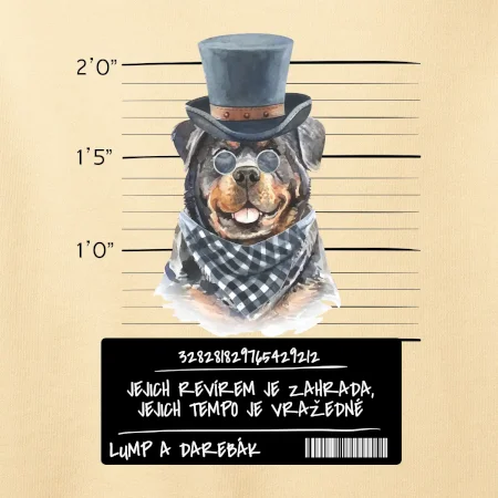 Triko pro pejskaře s nápisem "Jejich revírem je zahrada, jejich tempo je vražedné, lump a darebák". Triko, na kterém je pes rotvajler, by měl doma mít každý správný pejskař. Triko se psem je vhodný dárek pro pejskaře.
