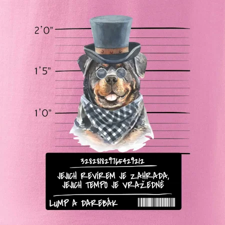 Triko pro pejskaře s nápisem "Jejich revírem je zahrada, jejich tempo je vražedné, lump a darebák". Triko, na kterém je pes rotvajler, by měl doma mít každý správný pejskař. Triko se psem je vhodný dárek pro pejskaře.