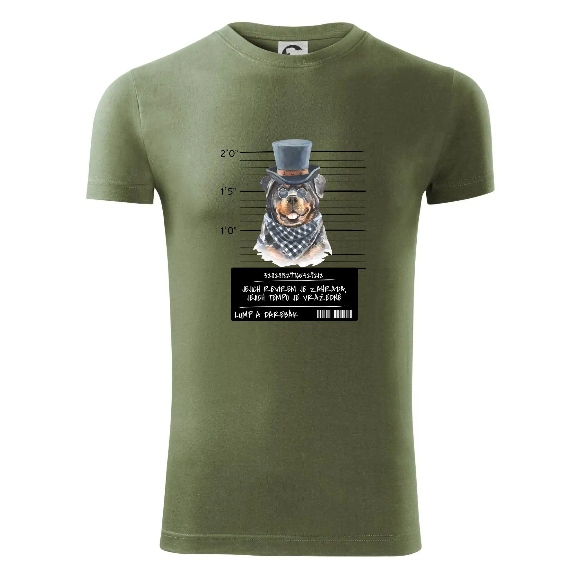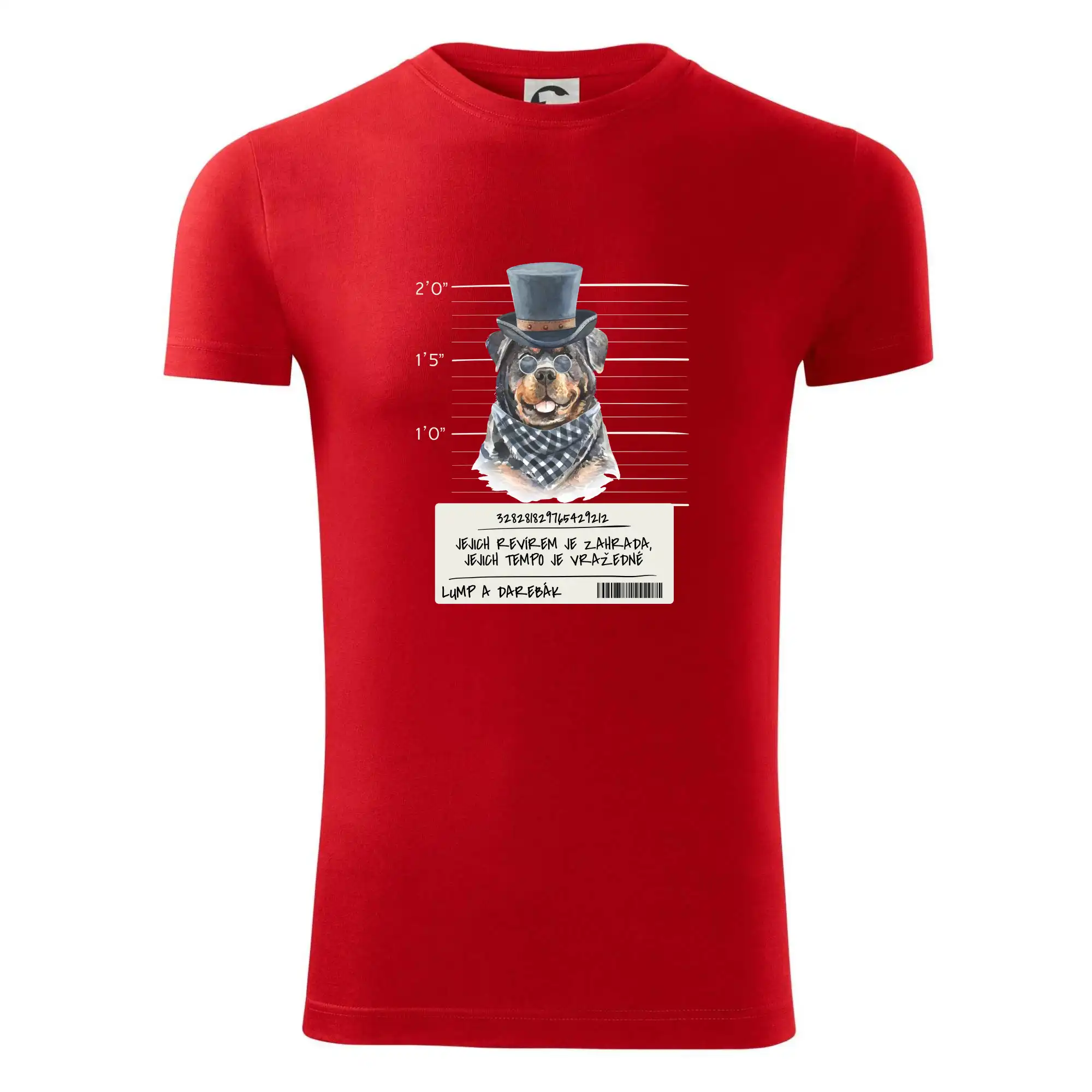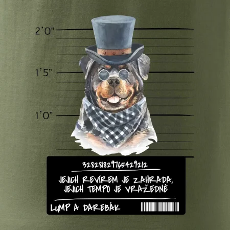 Triko pro pejskaře s nápisem "Jejich revírem je zahrada, jejich tempo je vražedné, lump a darebák". Triko, na kterém je pes rotvajler, by měl doma mít každý správný pejskař. Triko se psem je vhodný dárek pro pejskaře.