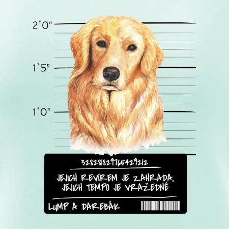 Triko pro pejskaře s nápisem "Jejich revírem je zahrada, jejich tempo je vražedné, lump a darebák". Triko, na kterém je pes zlatý retrívr, by měl doma mít každý správný pejskař. Triko se psem je vhodný dárek pro pejskaře.