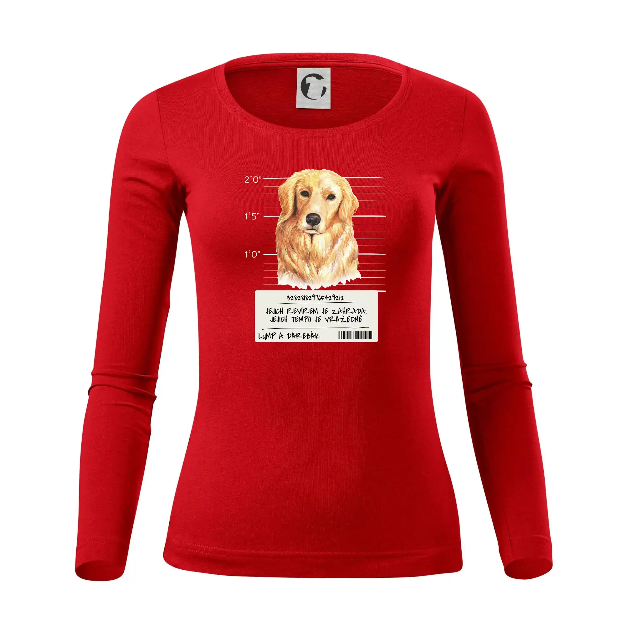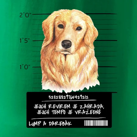 Triko pro pejskaře s nápisem "Jejich revírem je zahrada, jejich tempo je vražedné, lump a darebák". Triko, na kterém je pes zlatý retrívr, by měl doma mít každý správný pejskař. Triko se psem je vhodný dárek pro pejskaře.
