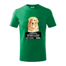Triko pro pejskaře s nápisem "Jejich revírem je zahrada, jejich tempo je vražedné, lump a darebák". Triko, na kterém je pes zlatý retrívr, by měl doma mít každý správný pejskař. Triko se psem je vhodný dárek pro pejskaře.