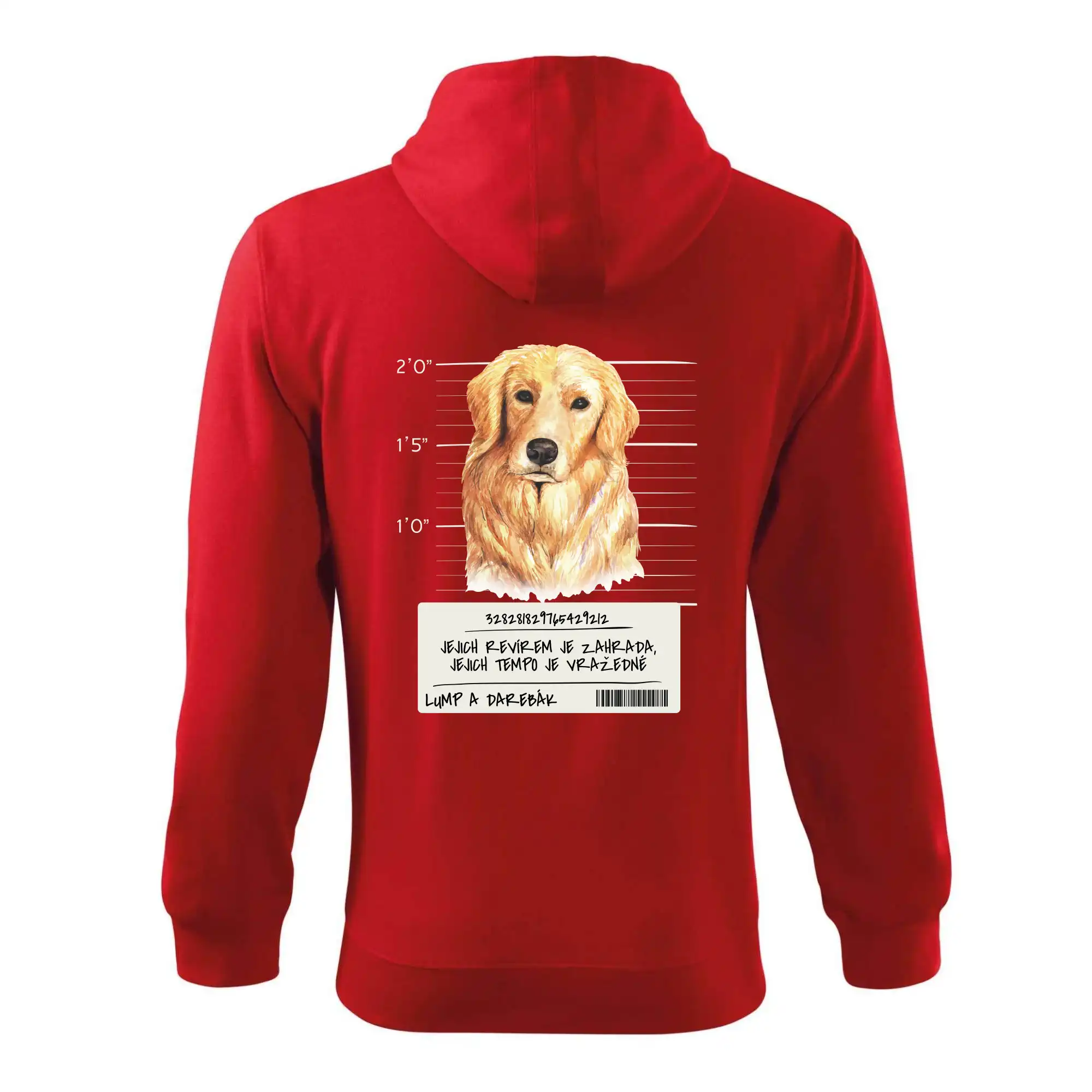 Triko pro pejskaře s nápisem "Jejich revírem je zahrada, jejich tempo je vražedné, lump a darebák". Triko, na kterém je pes zlatý retrívr, by měl doma mít každý správný pejskař. Triko se psem je vhodný dárek pro pejskaře.
