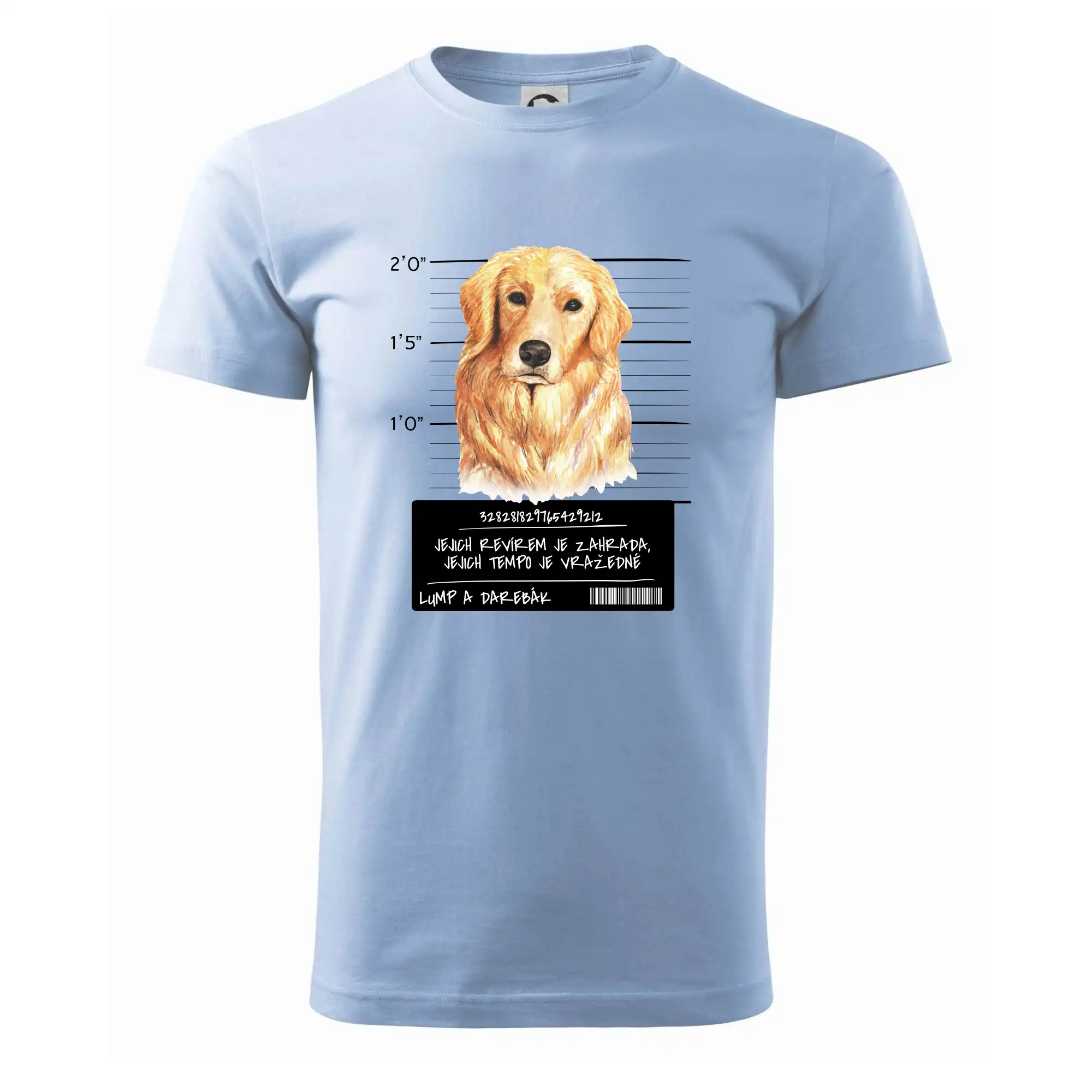 Triko pro pejskaře s nápisem "Jejich revírem je zahrada, jejich tempo je vražedné, lump a darebák". Triko, na kterém je pes zlatý retrívr, by měl doma mít každý správný pejskař. Triko se psem je vhodný dárek pro pejskaře.
